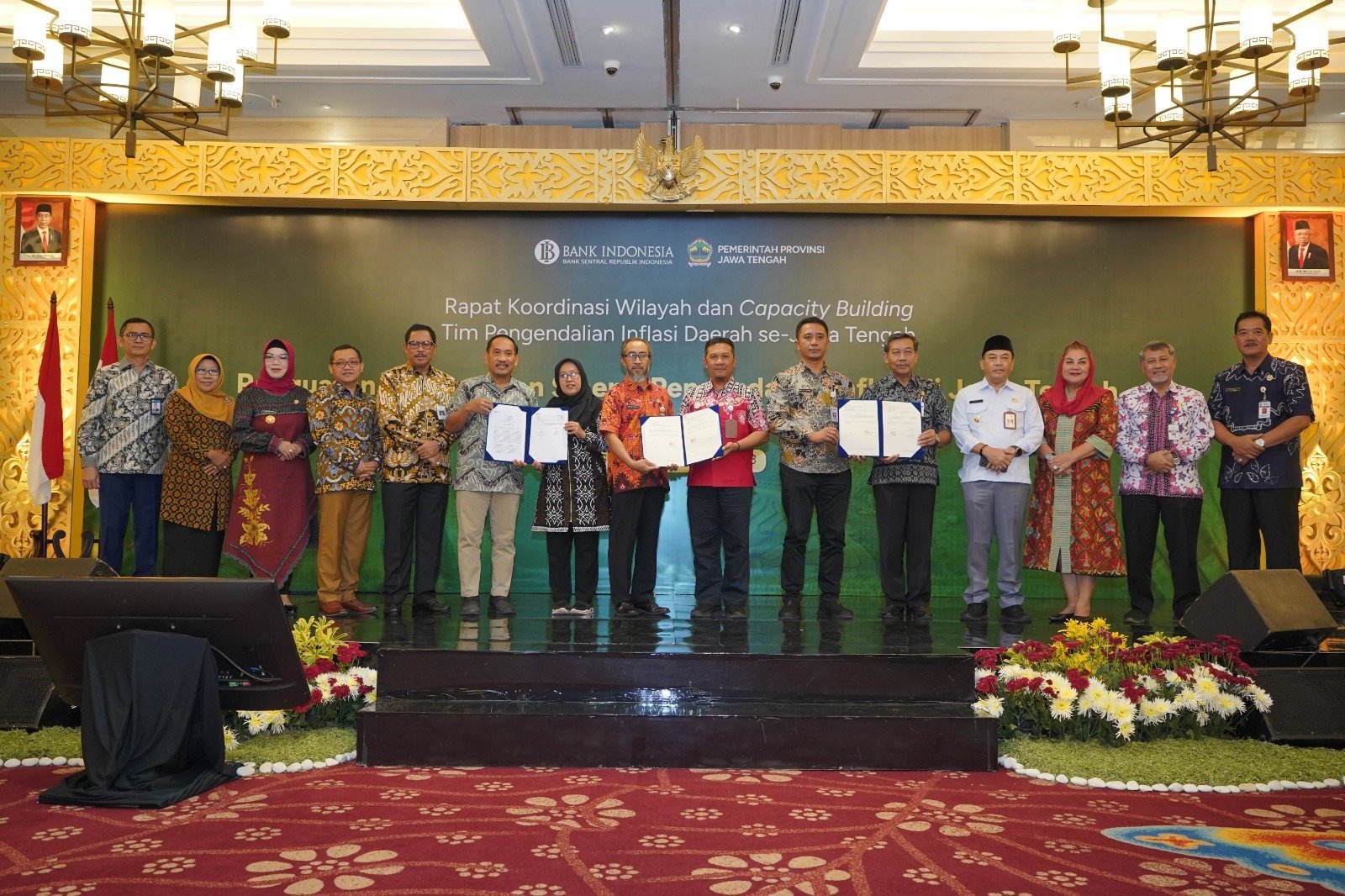 JATENGPOS.CO.ID, SEMARANG – Dalam rangka mengantisipasi berbagai gejolak harga yang terjadi belakangan ini, Kantor Perwakilan Bank Indonesia Provinsi Jawa Tengah, bersama dengan Tim Pengendalian Inflasi Daerah (TPID) Provinsi Jawa Tengah menyelenggarakan Rapat Koordinasi Wilayah (Rakorwil) dan Capacity Building pada 19 Oktober 2023 dengan tema “Penguatan Strategi dan Sinergi Pengendalian Inflasi di Jawa Tengah”.
