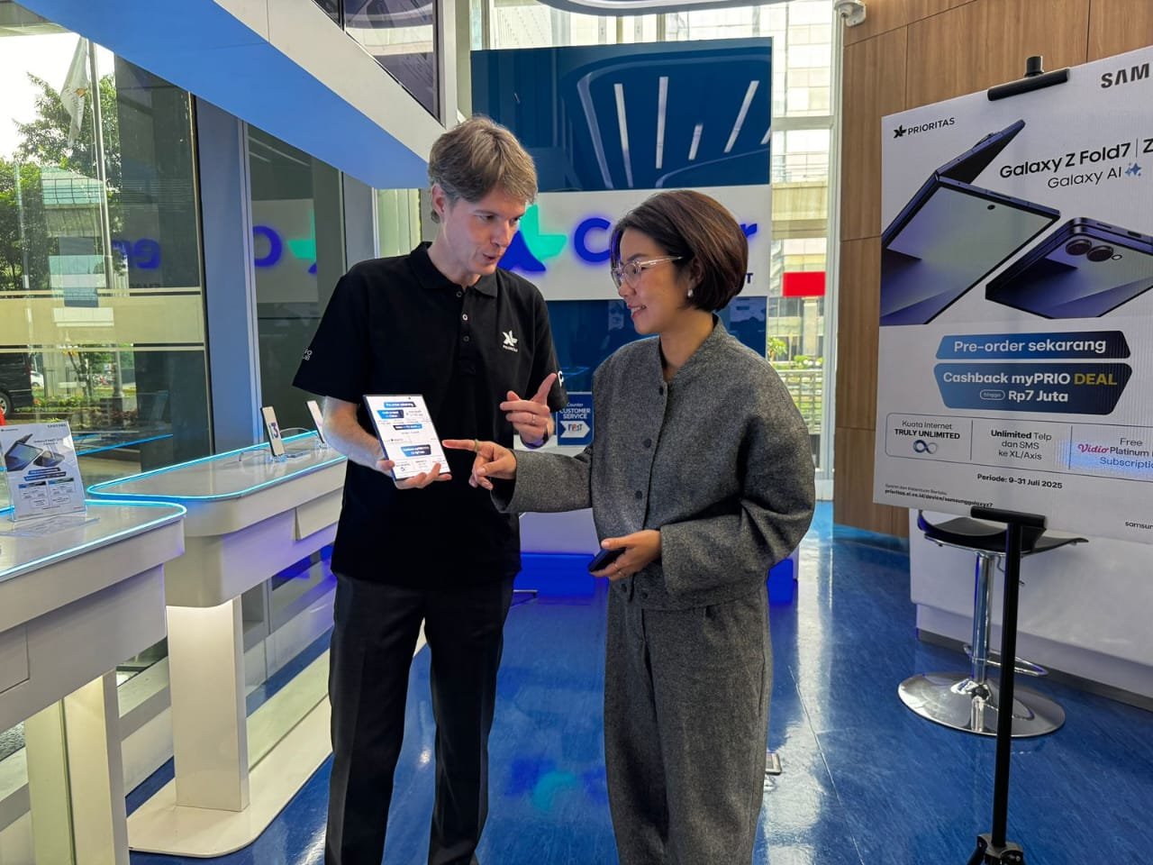 JATENGPOS.CO.ID, JAKARTA – PT XLSMART Telecom Sejahtera Tbk (XLSMART) berkolaborasi dengan Samsung Electronics Indonesia, kembali menghadirkan bundling eksklusif untuk produk flagship terbaru, Samsung Galaxy Z Fold7 dan Z Flip7. Bertepatan dengan pre-order resmi yang dimulai pada 9 Juli 2025 kemarin, XL PRIORITAS meluncurkan produk bundling baru yaitu myPRIO Deal Unlimited, dimana pelanggan dapat menikmati cashback hingga Rp 7 juta dan kuota data unlimited selama 2 tahun. Bundling ini secara resmi diperkenalkan di XLSMART Tower, Jakarta, Jumat (11/7/2025).