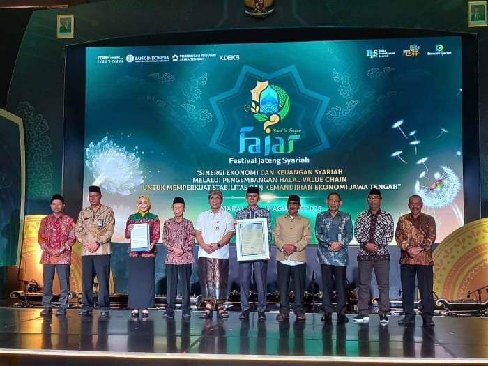 Sementara, pembukaan FAJAR 2025 turut diwarnai aksi nyata, seperti penyerahan sertifikat halal untuk RPH/RPU, UMKM makanan-minuman dan kain, serta jasa penggilingan daging; launching Zona KHAS di UIN Walisongo; penyerahan bantuan sumur bor Program Wakaf Digital; business matching pembiayaan syariah untuk UMKM bersama empat bank syariah; dan penandatanganan komitmen bersama pengembangan ekosistem halal di Jateng.