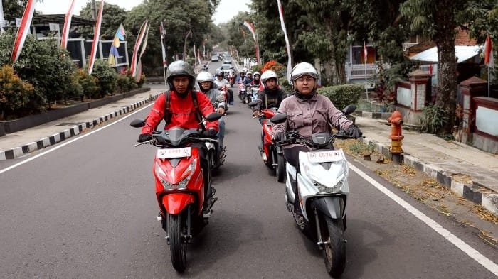 Kegiatan yang diikuti 30 bikers ini dimulai dari Dealer Ramajaya Motor Wonogiri. Sebelum berangkat, peserta dibekali pemaparan seputar komunitas Honda, materi safety riding, dan sesi peregangan bersama. Menariknya, seluruh bikers kompak tampil dengan nuansa merah putih, baik lewat motor Honda BeAT maupun outfit yang dikenakan.