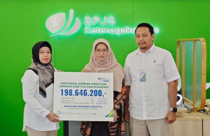 Sebagai bagian dari kegiatan, Kepala Kantor BPJS Ketenagakerjaan Klaten melalui Kepala Bidang Pelayanan, Muktiningsih, menyerahkan santunan jaminan kematian, jaminan hari tua, dan beasiswa senilai Rp198.646.200 kepada Ririn (46), istri almarhum Widoyoko Pratondo Susatyo, guru SMK Negeri 2 Klaten. Almarhum yang telah menjadi peserta sejak 2017 meninggal pada Mei 2025, meninggalkan dua anak yang masih bersekolah di SMA dan SMP.