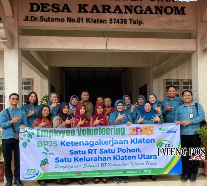 JATENGPOS.CO.ID, KLATEN – BPJS Ketenagakerjaan Cabang Klaten, Jawa Tengah, melaksanakan program Employee Volunteering Go Green dengan membagikan bibit pohon buah kepada masyarakat, Kamis (18/9/2025). Sebanyak 44 bibit pohon, terdiri dari mangga dan kelengkeng, disalurkan kepada 44 RT di Desa Karanganom, Kecamatan Klaten Utara.