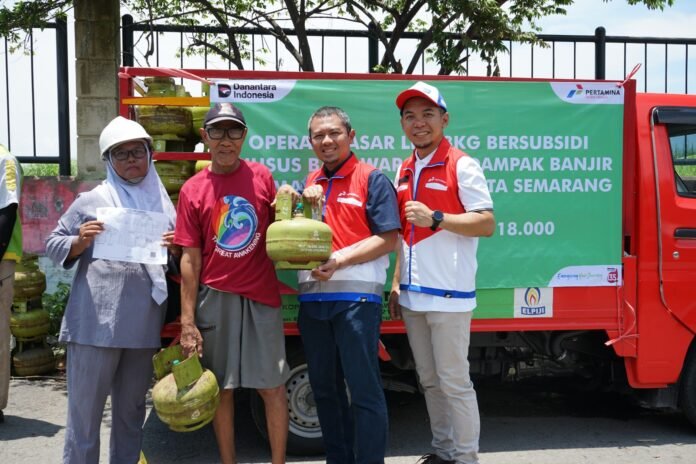JATENGPOS.CO.ID,  SEMARANG – Pertamina Patra Niaga Regional Jawa Bagian Tengah (JBT) bergerak cepat membantu warga yang terdampak banjir rob di Kota Semarang dengan menggelar operasi pasar LPG 3 kg bersubsidi. Sebanyak 750 tabung disalurkan ke tiga kelurahan yang terendam, yakni Tambakrejo, Sawah Besar, dan Sambirejo.