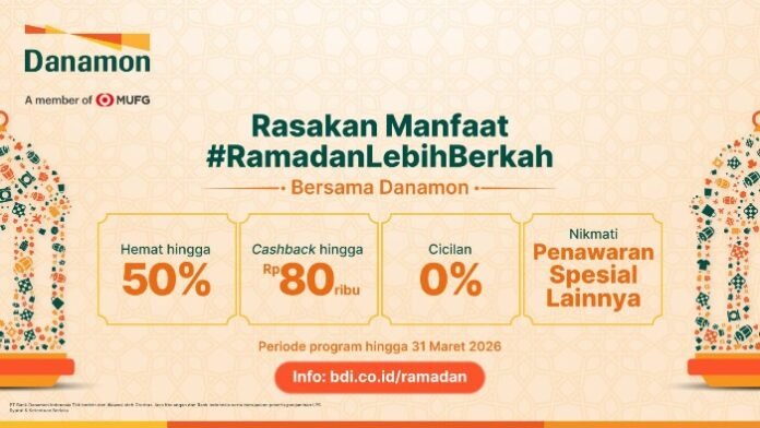 JATENGPOS.CO.ID, JAKARTA – Menyambut Ramadan 1447 H, PT Bank Danamon Indonesia Tbk meluncurkan program #RamadanLebihBerkah untuk membantu masyarakat mengelola keuangan secara lebih bijak. Program ini menawarkan ragam promo transaksi, cicilan ringan hingga perlindungan perjalanan selama Ramadan dan Lebaran 2026.