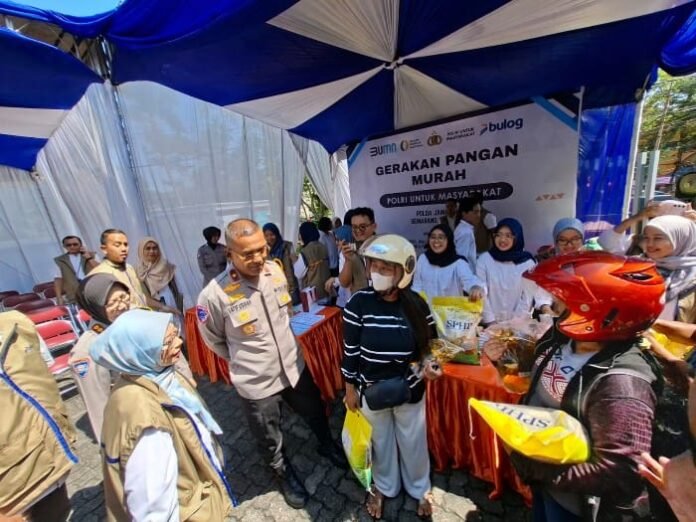 JATENGPOS.CO.ID, SEMARANG – Wakil Kepala Kepolisian Daerah Jawa Tengah Brigjen Pol Latif Usman memantau langsung pelaksanaan Gerakan Pangan Murah (GPM) di Kantor Wilayah BULOG Jawa Tengah, Jumat (13/3/2026). Kegiatan ini digelar untuk memastikan masyarakat dapat mengakses bahan kebutuhan pokok dengan harga terjangkau menjelang Lebaran.