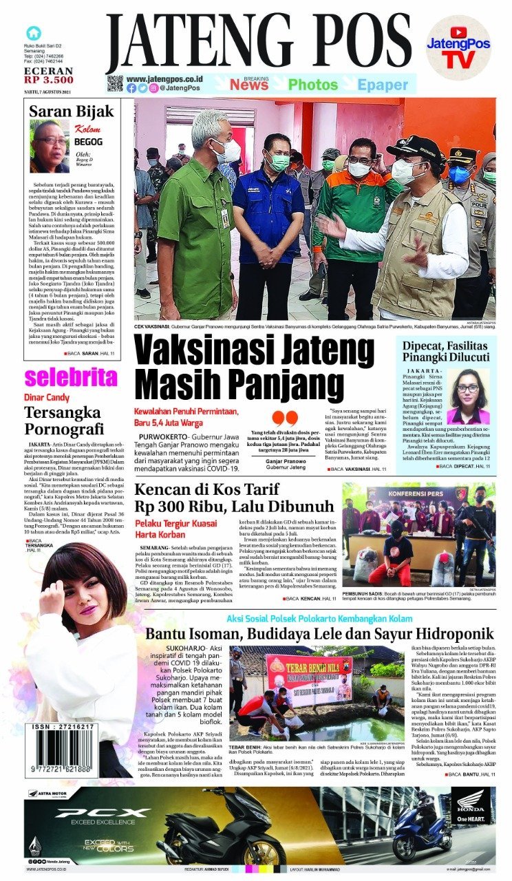 Epaper E-Paper Jateng Pos, 7 Agustus 2021 Admin: Jamilah Sabtu, 7 Agustus 2021 @09:51 1 dari 2 TERKINI Nadya Bridal Rayakan Keindahan Plus Size di Ikapesta 2026Sabtu, 24 Januari 2026 @23:46 Ancaman Pidana hingga Insentif PBB, Strategi Pemprov Jateng Jaga Sawah Sabtu, 24 Januari 2026 @20:51 Nawal Yasin Minta JMQH Perkuat Pembinaan Perempuan Penghafal Al-Qur’an Sabtu, 24 Januari 2026 @20:48 Cegah Banjir, Wagub Taj Yasin Minta Masyarakat Perbanyak Biopori Sabtu, 24 Januari 2026 @20:43 Srikandi PLN Hadirkan Ruang Cerita Ibu Sabtu, 24 Januari 2026 @06:27 Rekomendasi... E-Paper Jateng Pos, 25 September 2021Sabtu, 25 September 2021 @07:24 E-Paper Koran Jateng Pos, Jumat 31 Januari...Jumat, 31 Januari 2025 @07:41 E-Paper Koran Jateng Pos, Selasa 06 November...Selasa, 5 November 2024 @14:32 E-Paper Koran Jateng Pos, Selasa 11 Juni...Rabu, 12 Juni 2024 @22:18 E-Paper Koran Jateng Pos, Kamis 30 November...Kamis, 30 November 2023 @07:17 E-Paper Koran Jateng Pos, 19 November 2021Jumat, 19 November 2021 @06:32