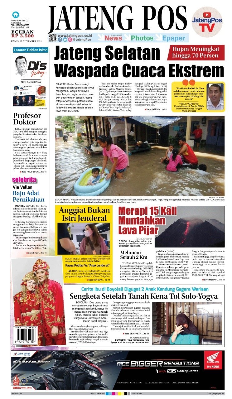 Epaper E-Paper Koran Jateng Pos, 25 November 2021 Admin: Jamilah Kamis, 25 November 2021 @06:18 TERKINI Sekda Berharap Pusat Perbanyak Event Nasional di JatengSabtu, 25 April 2026 @15:58 Progresif Dalam Penanganan Stunting, Ahmad Luthfi Raih National Governance Award 2026 Sabtu, 25 April 2026 @15:43 Sekda Jateng Bicara Manfaat Olahraga untuk Veteran : Kebersamaan, Kesehatan, dan... Sabtu, 25 April 2026 @13:29 Berkah Setia Farm Jadi Percontohan Lumbung Ternak Jateng Sabtu, 25 April 2026 @13:26 Bank Jateng Ukir Prestasi, Anna Kusumarita Raih The Most Outstanding Women... Sabtu, 25 April 2026 @11:16 Rekomendasi... E-Paper Koran Jateng Pos, Rabu 15 Juni...Rabu, 15 Juni 2022 @07:14 E-Paper Koran Jateng Pos, Minggu 17 Desember...Minggu, 17 Desember 2023 @07:05 E-Paper Koran Jateng Pos, 29 November 2021Senin, 29 November 2021 @06:09 E-Paper Koran Jateng Pos, 14 Desember 2021Selasa, 14 Desember 2021 @06:57 E-Paper Jateng Pos, 12 Agustus 2021Rabu, 11 Agustus 2021 @21:31 E-Paper Koran Jateng Pos, Selasa 26 Maret...Selasa, 26 Maret 2024 @08:28