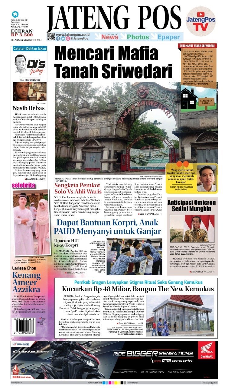 Epaper E-Paper Koran Jateng Pos, 30 November 2021 Admin: Jamilah Selasa, 30 November 2021 @06:53 TERKINI Sekda Berharap Pusat Perbanyak Event Nasional di JatengSabtu, 25 April 2026 @15:58 Progresif Dalam Penanganan Stunting, Ahmad Luthfi Raih National Governance Award 2026 Sabtu, 25 April 2026 @15:43 Sekda Jateng Bicara Manfaat Olahraga untuk Veteran : Kebersamaan, Kesehatan, dan... Sabtu, 25 April 2026 @13:29 Berkah Setia Farm Jadi Percontohan Lumbung Ternak Jateng Sabtu, 25 April 2026 @13:26 Bank Jateng Ukir Prestasi, Anna Kusumarita Raih The Most Outstanding Women... Sabtu, 25 April 2026 @11:16 Rekomendasi... E-Paper Koran Jateng Pos, Rabu, 19 Maret...Rabu, 19 Maret 2025 @09:06 E-Paper Koran Jateng Pos, Selasa 19 Desember...Selasa, 19 Desember 2023 @17:30 E-Paper Koran Jateng Pos, Senin , 17...Senin, 17 Maret 2025 @05:01 E-Paper Koran Jateng Pos, Selasa 23 Juli...Selasa, 23 Juli 2024 @09:01 Headline Koran Jateng Pos, Selasa 16 September...Selasa, 16 September 2025 @05:25 E-Paper Koran Jateng Pos, Senin 18 November...Senin, 18 November 2024 @04:57