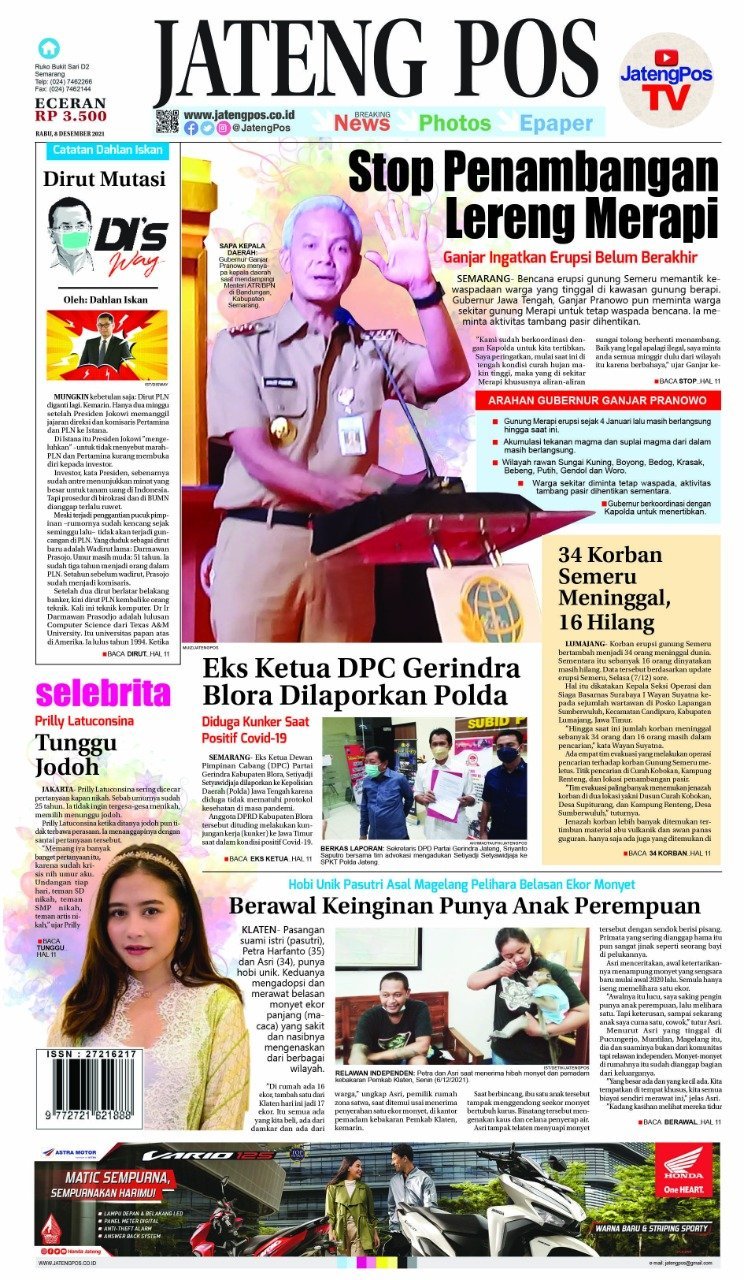 Epaper E-Paper Koran Jateng Pos, 08 Desember 2021 Admin: Jamilah Rabu, 8 Desember 2021 @06:46 TERKINI Bayar PBB Karanganyar Makin Mudah via Smart Billing Bank JatengMinggu, 1 Februari 2026 @14:32 Apresiasi Loyalitas, Bank Jateng Rembang Bagi-Bagi Hadiah Minggu, 1 Februari 2026 @14:29 Bank Jateng & Korem 072 Perkuat Sinergi Lewat Olahraga Minggu, 1 Februari 2026 @14:26 HPN 2026 PWI Jateng Disemarakkan Main Olahraga Bareng dan Dialog Rektor Minggu, 1 Februari 2026 @11:18 Pemkab Pekalongan Apresiasi Ika Ilpem Fisip Undip Minggu, 1 Februari 2026 @11:17 Rekomendasi... E-Paper Koran Jateng Pos, 26 November 2021Jumat, 26 November 2021 @06:18 E-Paper Koran Jateng Pos, Jumat 24 Januari...Jumat, 24 Januari 2025 @08:35 E-Paper Koran Jateng Pos, Jumat 20 Oktober...Jumat, 20 Oktober 2023 @08:17 E-Paper Koran Jateng Pos, Kamis 15 Juni...Kamis, 15 Juni 2023 @08:04 E-Paper Koran Jateng Pos, 28 Desember 2021Selasa, 28 Desember 2021 @08:40 E-Paper Koran Jateng Pos, Kamis 23 Juni...Kamis, 23 Juni 2022 @06:33
