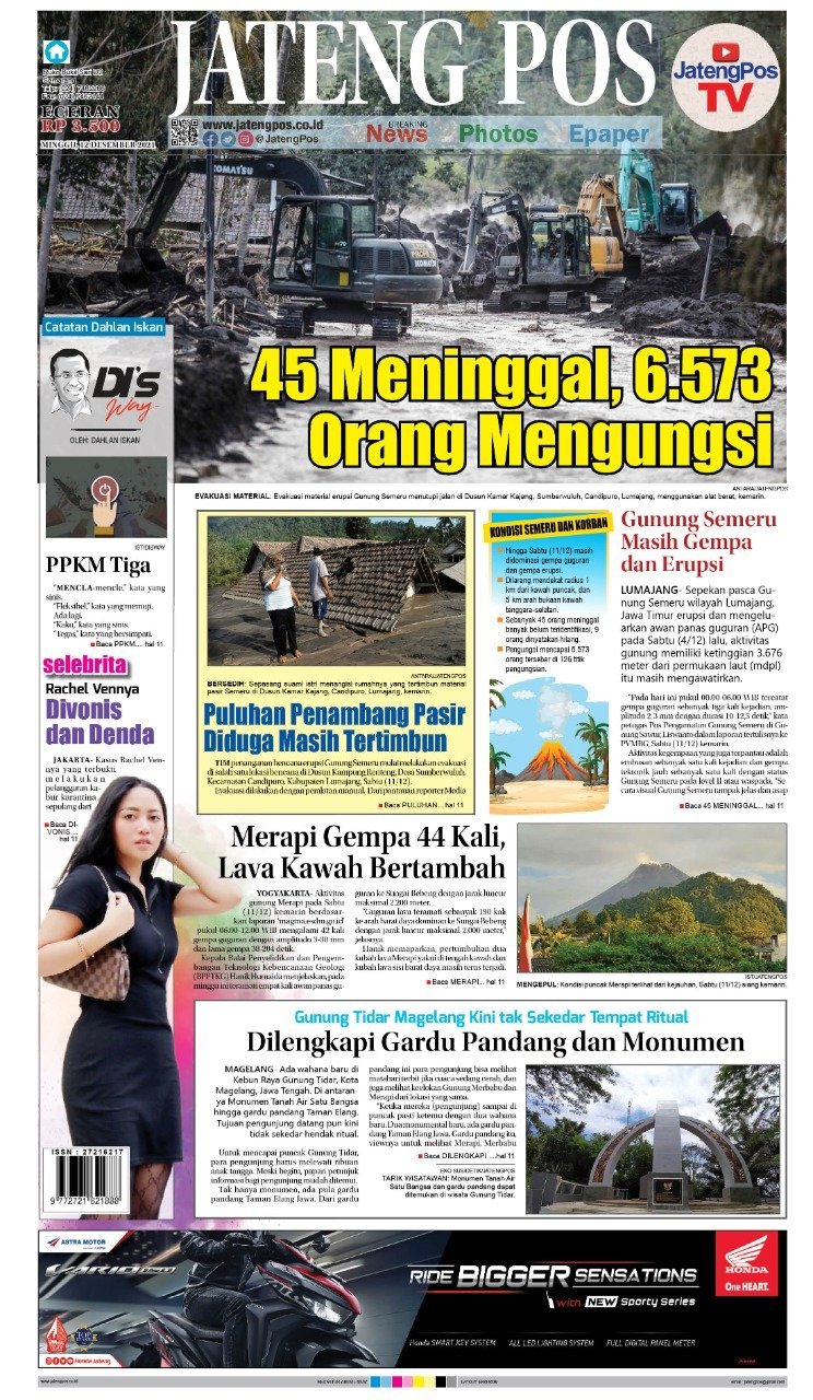 Epaper E-Paper Koran Jateng Pos, 12 Desember 2021 Admin: Jamilah Minggu, 12 Desember 2021 @06:53 TERKINI Pemprov Jateng Tangani Banjir Pekalongan: Pompa Dikerahkan, Logistik Ratusan Juta DigelontorkanSelasa, 10 Februari 2026 @17:26 Rumah Tapak Sejarah Kabupaten Semarang Diusulkan Jadi Wahana Edukasi Selasa, 10 Februari 2026 @16:38 OJK, BEI, dan KSEI Percepat Reformasi Pasar Modal Selasa, 10 Februari 2026 @15:54 DJP Selidiki Dugaan Pelanggaran Pajak Tiga Perusahaan Baja Selasa, 10 Februari 2026 @15:52 Libur Imlek, KAI Daop 4 Semarang Siapkan 83 Ribu Kursi KA Selasa, 10 Februari 2026 @15:46 Rekomendasi... E-Paper Koran Jateng Pos, 13 Maret 2023Senin, 13 Maret 2023 @08:11 E-Paper Koran Jateng Pos, Senin 20 Januari...Senin, 20 Januari 2025 @06:07 E-Paper Jateng Pos, 27 Agustus 201Jumat, 27 Agustus 2021 @05:45 E-Paper Koran Jateng Pos, Senin 18 November...Senin, 18 November 2024 @04:57 E-Paper Koran Jateng Pos, 05 Oktober 2021Selasa, 5 Oktober 2021 @09:05 E-Paper Koran Jateng Pos, 04 Februari 2022Jumat, 4 Februari 2022 @08:13