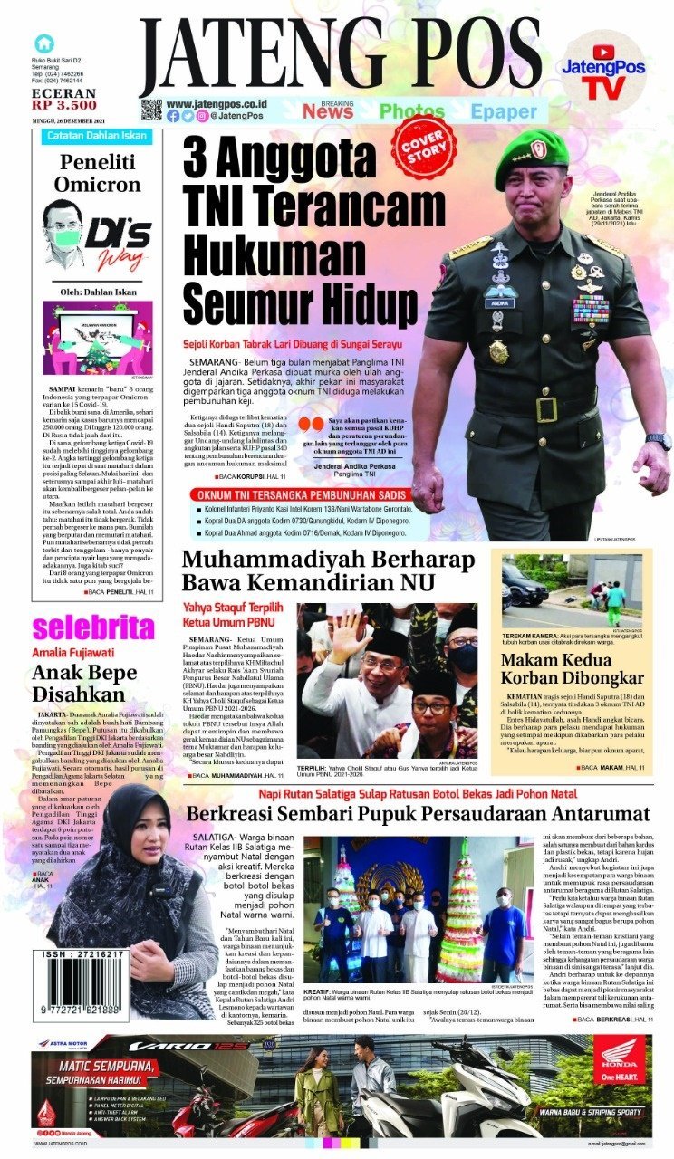 Epaper E-Paper Koran Jateng Pos, 26 Desember 2021 Admin: Jamilah Minggu, 26 Desember 2021 @08:55 TERKINI Ahmad Luthfi Terjunkan Dokter Speling di Wilayah Bencana, Jamin Obat-Obatan Hingga LogistikMinggu, 1 Februari 2026 @18:00 Respons Cepat Aduan Warga Terkait Banjir Pekalongan, Wagub Jateng Langsung Tinjau... Minggu, 1 Februari 2026 @16:46 Sekda Jateng Ramaikan Sriboga Run di Semarang Minggu, 1 Februari 2026 @16:25 Gus Yasin :Bisyaroh Penghafal Qur’an Ikhtiar Hadirkan APBD yang Berkah Minggu, 1 Februari 2026 @16:22 Respons Aduan Banjir Pekalongan, Wagub Jateng Langsung Tinjau & Segera Kirim... Minggu, 1 Februari 2026 @16:19 Rekomendasi... E-Paper Koran Jateng Pos, Selasa 07 Juni...Selasa, 7 Juni 2022 @06:38 E-Paper Jateng Pos, 30 Januari 2022Minggu, 30 Januari 2022 @08:57 E-Paper Koran Jateng Pos, Sabtu 04 Juni...Sabtu, 4 Juni 2022 @06:29 E-Paper Koran Jateng Pos, 11 Januari 2022Selasa, 11 Januari 2022 @08:19 LOMBA PENULISAN ARTIKEL ILMIAHJumat, 28 Oktober 2022 @14:40 E-Paper Koran Jateng Pos, Kamis 25 Mei...Kamis, 25 Mei 2023 @09:12