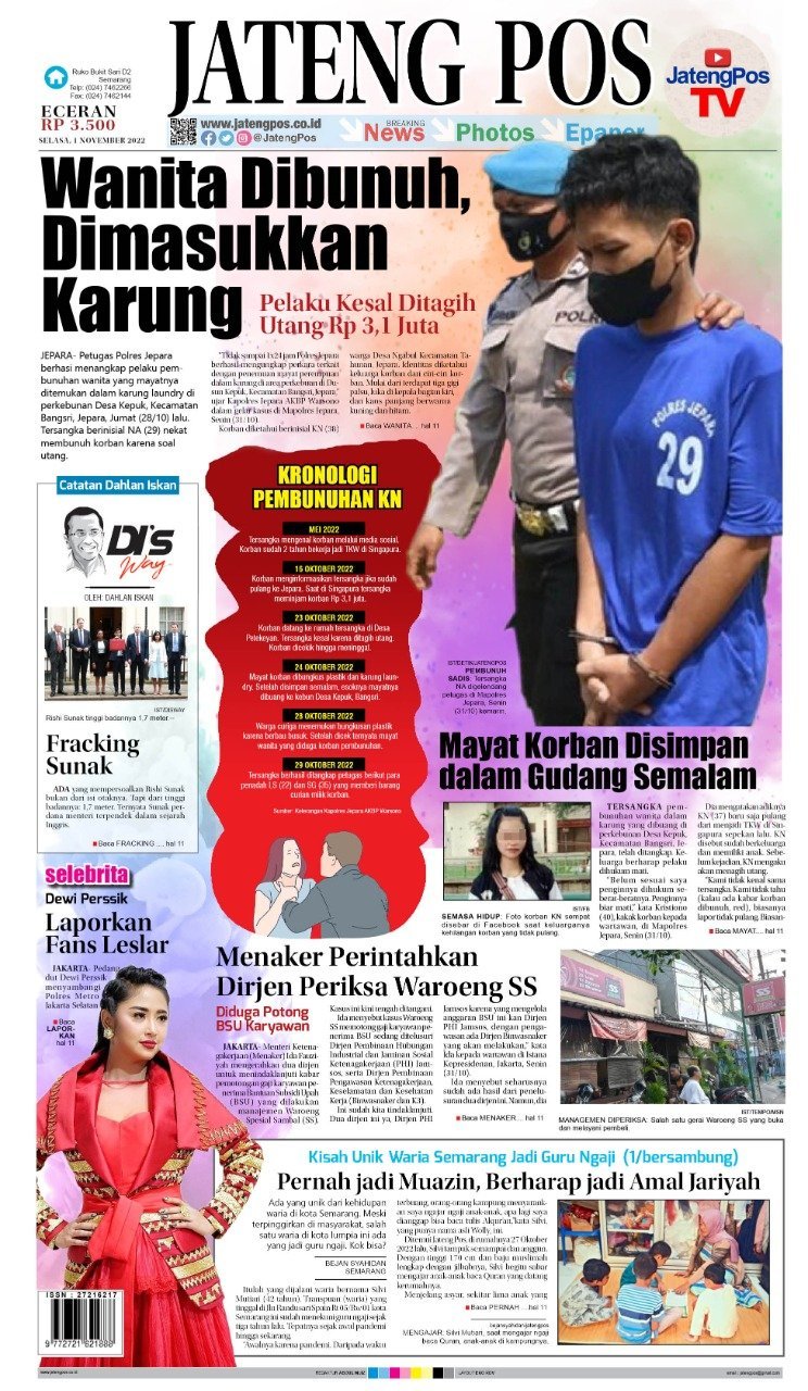 Epaper E-Paper Koran Jateng Pos, Selasa 01 November 2022 Admin: Redaksi Selasa, 1 November 2022 @08:19 TERKINI KoenoKoeni Hotel Semarang Topping-OffJumat, 30 Januari 2026 @22:46 Sambut Ramadan, Hotel Dafam Semarang Gelar Aksi Sosial ‘Preloved for Love’ Jumat, 30 Januari 2026 @22:44 Metro Park View Kota Lama Semarang Suguhkan “Treasure of Asian Taste”... Jumat, 30 Januari 2026 @22:43 OJK Perkuat Transparansi Pasar Modal, Respons Persyaratan MSCI Jumat, 30 Januari 2026 @22:40 Panduan Memilih Minyak Rem yang Tepat Jumat, 30 Januari 2026 @22:38 Rekomendasi... Headline Koran Jateng Pos, Kamis 18 September...Kamis, 18 September 2025 @06:28 E-Paper Koran Jateng Pos, 15 Februari 2023Rabu, 15 Februari 2023 @07:34 E-Paper Koran Jateng Pos, Sabtu 07 September...Sabtu, 7 September 2024 @16:04 E-Paper Koran Jateng Pos, 16 Desember 2021Kamis, 16 Desember 2021 @06:02 E-Paper Koran Jateng Pos, 07 Desember 2021Selasa, 7 Desember 2021 @06:43 E-Paper Koran Jateng Pos, Sabtu 24 Agustus...Sabtu, 24 Agustus 2024 @07:13