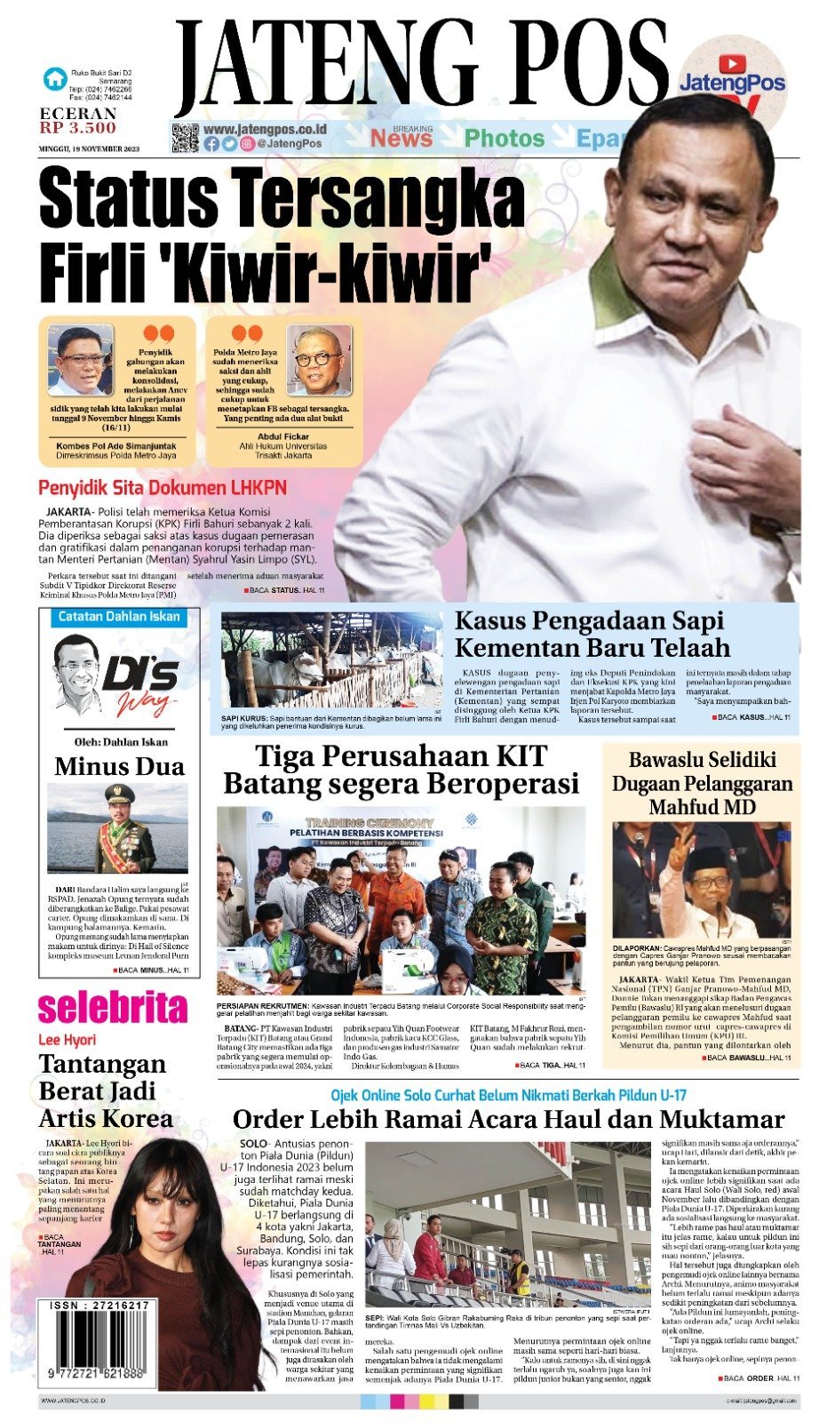 Epaper E-Paper Koran Jateng Pos, Minggu 19 November 2023 Admin: Redaksi Minggu, 19 November 2023 @06:00 TERKINI SMP Negeri 3 Ngawen Blora Gali Kreativitas Siswa Melalui SASI SAKASelasa, 16 Desember 2025 @13:19 7 Sekolah Rembang Raih Adiwiyata Nasional 2025 Selasa, 16 Desember 2025 @12:51 STY Tak Pernah Dihubungi PSSI Selasa, 16 Desember 2025 @12:16 Jawa Tengah Sumbang Warisan Budaya Takbenda Terbanyak di Indonesia Selasa, 16 Desember 2025 @10:36 Jawa Tengah Dinobatkan Sebagai Provinsi Terbaik dalam Pemanfaatan Data Pendidikan Selasa, 16 Desember 2025 @10:34 Rekomendasi... E-Paper Koran Jateng Pos, Rabu 14 Juni...Rabu, 14 Juni 2023 @06:38 E-Paper Koran Jateng Pos, Selasa 17 Oktober...Selasa, 17 Oktober 2023 @08:32 E-Paper Koran Jateng Pos, Senin 27 November...Senin, 27 November 2023 @06:08 E-Paper Koran Jateng Pos, 23 November 2021Selasa, 23 November 2021 @06:24 E-Paper Jateng Pos, 20 September 2021Senin, 20 September 2021 @06:17 E-Paper Koran Jateng Pos, 05 Maret 2022Sabtu, 5 Maret 2022 @08:00