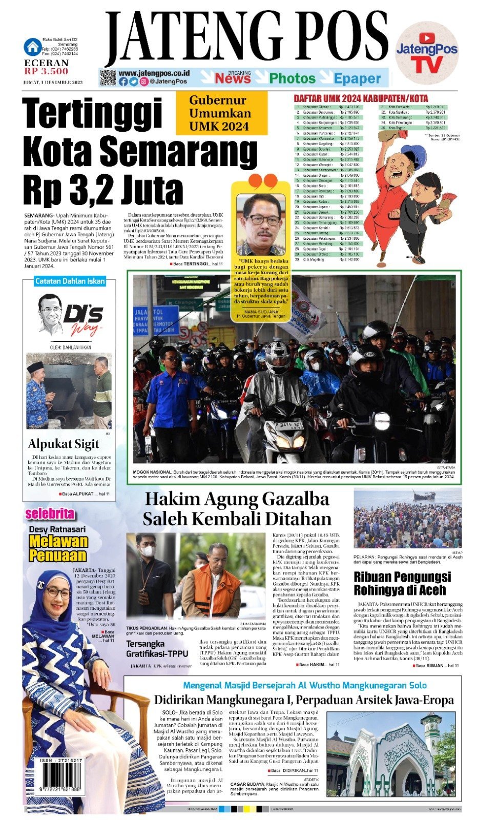 Epaper E-Paper Koran Jateng Pos, Jumat 01 Desember 2023 Admin: Redaksi Jumat, 1 Desember 2023 @07:25 TERKINI Gubernur Ahmad Luthfi Pantau Langsung THR Buruh: Hak Pekerja Wajib Cair H-7 LebaranSelasa, 10 Maret 2026 @22:04 Di Era Viral dan Hoaks, Wagub Jateng Minta Santri Produksi Konten... Selasa, 10 Maret 2026 @22:01 Tol Bawen-Ambarawa Dibuka Fungsional Saat Mudik Lebaran Selasa, 10 Maret 2026 @16:49 Sambut Arus Mudik Lebaran 2026, Polda Jateng Siapkan Strategi Pengendalian Wilayah Selasa, 10 Maret 2026 @16:48 Exit Tol Bawen Rawan Kecelakaan Selasa, 10 Maret 2026 @16:46 Rekomendasi... E-Paper Koran Jateng Pos, Rabu 22 Juni...Rabu, 22 Juni 2022 @06:33 E-Paper Koran Jateng Pos, Selasa 26 November...Selasa, 26 November 2024 @07:13 E-Paper Koran Jateng Pos, Kamis 25 Juli...Kamis, 25 Juli 2024 @09:08 E-Paper Koran Jateng Pos, 08 Januari 2022Sabtu, 8 Januari 2022 @08:25 E-Paper Koran Jateng Pos, Senin 29 Agustus...Senin, 29 Agustus 2022 @05:06 E-Paper Koran Jateng Pos, Sabtu 27 Januari...Sabtu, 27 Januari 2024 @08:14