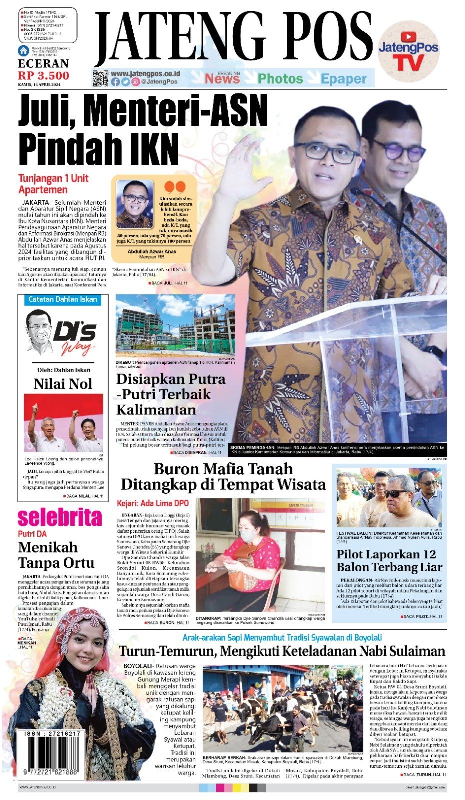 Epaper E-Paper Koran Jateng Pos, Kamis 18 April 2024 Admin: Redaksi Kamis, 18 April 2024 @22:28 TERKINI Mengharukan, Pemudik Hidrosefalus Asal Sukoharjo dapat Layanan Istimewa Selasa, 17 Maret 2026 @09:39 Pemkot Semarang Fasilitasi Mudik Gratis Bagi Warganya dari Jakarta ke Kota... Selasa, 17 Maret 2026 @09:28 Pemkot Semarang Dirikan Posko Kemanusiaan Lebaran 2026, Layani Pemudik dengan Fasilitas... Selasa, 17 Maret 2026 @09:28 Astra Siaga Lebaran Hadir di Jalur Mudik Jateng Selasa, 17 Maret 2026 @09:24 TMJ Siapkan Layanan Maksimal di Tol Semarang–Solo Selasa, 17 Maret 2026 @09:23 Rekomendasi... E-Paper Koran Jateng Pos, 19 Januari 2022Rabu, 19 Januari 2022 @08:43 E-Paper Koran Jateng Pos, Kamis 25 Mei...Kamis, 25 Mei 2023 @09:12 E-Paper Koran Jateng Pos, Minggu 21 April...Minggu, 21 April 2024 @18:59 E-Paper Jateng Pos, 8 September 2021Selasa, 7 September 2021 @22:14 E-Paper Koran Jateng Pos, Minggu 19 November...Minggu, 19 November 2023 @06:00 E-Paper Koran Jateng Pos, 20 Maret 2023Senin, 20 Maret 2023 @07:12