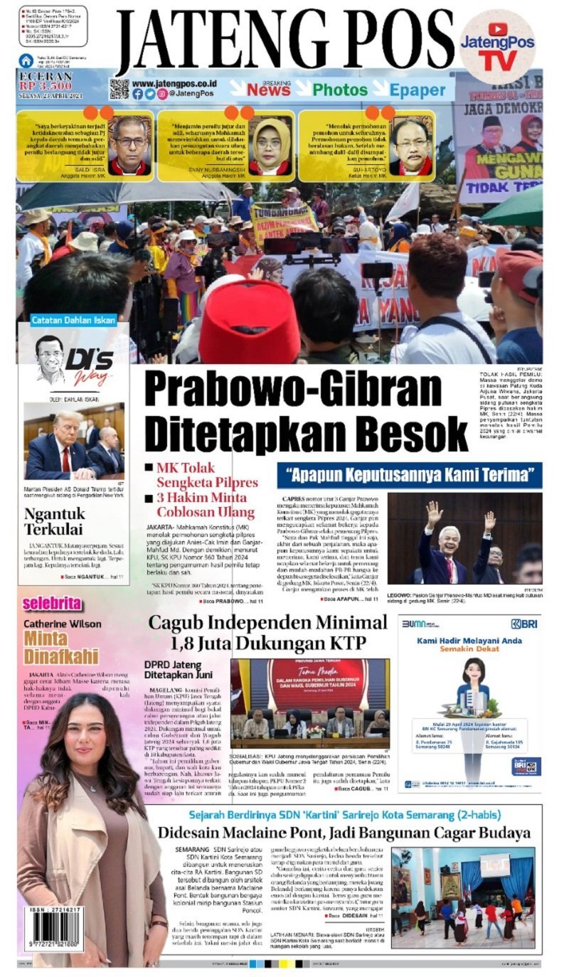 Epaper E-Paper Koran Jateng Pos, Selasa 23 April 2024 Admin: Redaksi Selasa, 23 April 2024 @07:55 TERKINI Nadya Bridal Rayakan Keindahan Plus Size di Ikapesta 2026Sabtu, 24 Januari 2026 @23:46 Ancaman Pidana hingga Insentif PBB, Strategi Pemprov Jateng Jaga Sawah Sabtu, 24 Januari 2026 @20:51 Nawal Yasin Minta JMQH Perkuat Pembinaan Perempuan Penghafal Al-Qur’an Sabtu, 24 Januari 2026 @20:48 Cegah Banjir, Wagub Taj Yasin Minta Masyarakat Perbanyak Biopori Sabtu, 24 Januari 2026 @20:43 Srikandi PLN Hadirkan Ruang Cerita Ibu Sabtu, 24 Januari 2026 @06:27 Rekomendasi... E-Paper Jateng Pos, 8 Agustus 2021Sabtu, 7 Agustus 2021 @22:29 E-Paper Koran Jateng Pos, 13 Januari 2022Kamis, 13 Januari 2022 @08:14 E-Paper Koran Jateng Pos, Selasa 21 Januari...Selasa, 21 Januari 2025 @06:54 E-Paper Koran Jateng Pos, Kamis 03 September...Kamis, 3 Oktober 2024 @08:47 E-Paper Koran Jateng Pos, Rabu 10 Agustus...Rabu, 10 Agustus 2022 @11:05 E-Paper Jateng Pos, 01 September 2021Rabu, 1 September 2021 @05:20