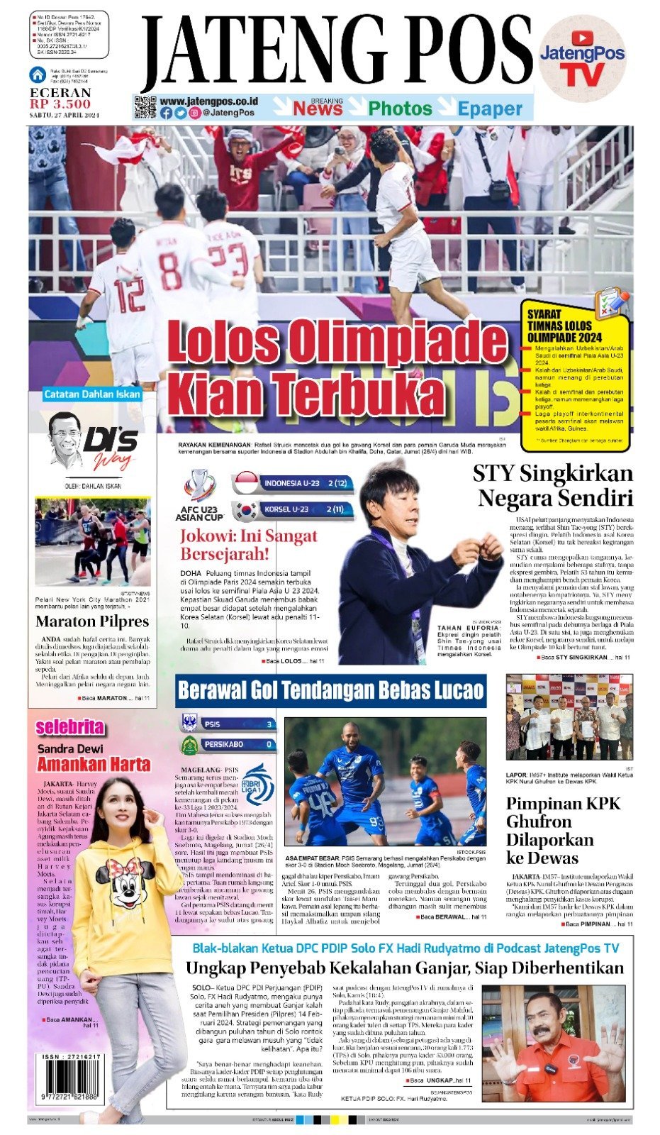 Epaper E-Paper Koran Jateng Pos, Sabtu 27 April 2024 Admin: Redaksi Sabtu, 27 April 2024 @07:42 TERKINI Berikan Bisyaroh Santri, Wagub Berpesan Baca dan Dengarkan Al-Qur’an untuk KehidupanSabtu, 31 Januari 2026 @15:14 Tak Hanya Bantuan dan Bangun Rumah, Pemprov Jateng Pulihkan Luka Batin... Sabtu, 31 Januari 2026 @15:11 Proses Kepailitan Sritex Group: Tim Kurator Lelang Aset Bertahap, Prioritaskan Pesangon... Sabtu, 31 Januari 2026 @12:28 Upaya Pemprov Jateng Menghapus Duka Bagi Penyintas Bencana Sabtu, 31 Januari 2026 @11:31 Tersinggung Kontrak Baru Sabtu, 31 Januari 2026 @08:38 Rekomendasi... E-Paper Koran Jateng Pos, Kamis 13 Juni...Kamis, 13 Juni 2024 @07:17 E-Paper Koran Jateng Pos, Senin 20 Januari...Senin, 20 Januari 2025 @06:07 E-Paper Koran Jateng Pos, 16 Maret 2023Kamis, 16 Maret 2023 @07:52 E-Paper Koran Jateng Pos, 19 Februari 2022Sabtu, 19 Februari 2022 @07:16 E-Paper Koran Jateng Pos, 08 Mei 2023Senin, 8 Mei 2023 @07:14 LOMBA PENULISAN ARTIKEL ILMIAHJumat, 28 Oktober 2022 @14:40