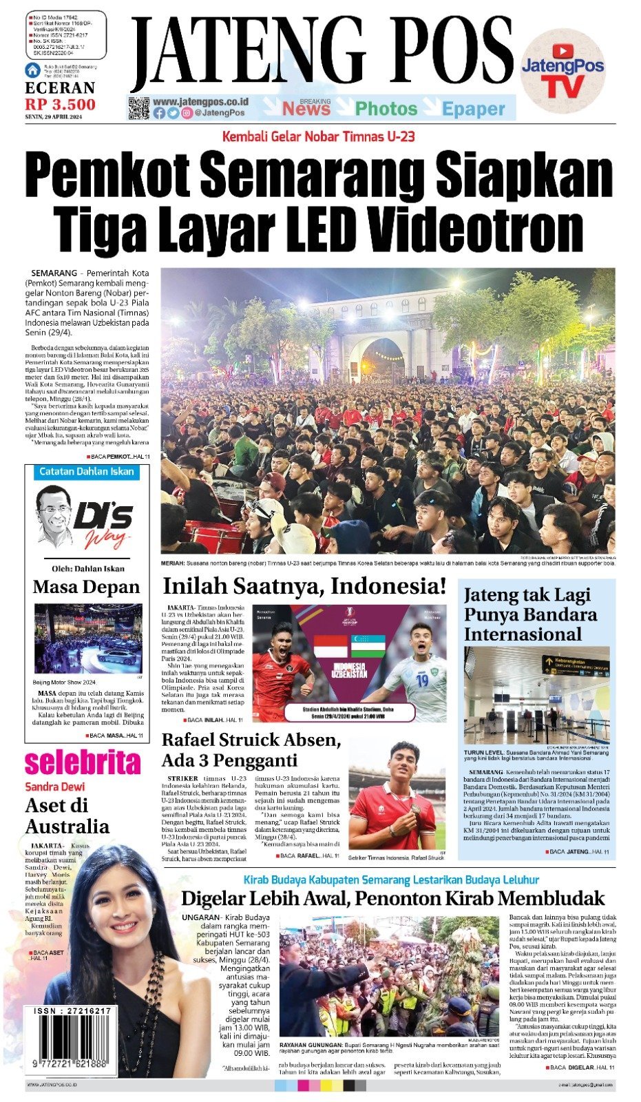 Epaper E-Paper Koran Jateng Pos, Senin 29 April 2024 Admin: Redaksi Senin, 29 April 2024 @08:46 TERKINI Pastikan Penanganan Korban Banjir dan Longsor Pemalang, Gubernur Ahmad Luthfi Minta Percepat Pemulihan PascabencanaJumat, 30 Januari 2026 @17:10 Sumarno: KDMP Jangan Seperti KUD Zaman Dulu Jumat, 30 Januari 2026 @17:07 Bencana Pemalang, Ahmad Luthfi Instruksikan Percepatan Penanganan Menyeluruh Jumat, 30 Januari 2026 @17:04 Geger Perubahan Nama KGPH Puruboyo, LDA: Hanya Administratif, Bukan Gelar Adat Jumat, 30 Januari 2026 @16:58 Polres Wonogiri Ringkus Penjarah Kayu Sonokeling Jumat, 30 Januari 2026 @16:52 Rekomendasi... E-Paper Koran Jateng Pos, 25 Januari 2022Selasa, 25 Januari 2022 @08:37 E-Paper Koran Jateng Pos, Rabu 20 Desember...Rabu, 20 Desember 2023 @07:23 E-Paper Jateng Pos, 5 Agustus 2021Jumat, 6 Agustus 2021 @09:34 E-Paper Koran Jateng Pos, Sabtu 13 Mei...Sabtu, 13 Mei 2023 @07:55 Headline Koran Jateng Pos, Jumat 17 Oktober...Jumat, 17 Oktober 2025 @05:58 E-Paper Koran Jateng Pos, Sabtu 31 Agustus...Sabtu, 31 Agustus 2024 @09:15