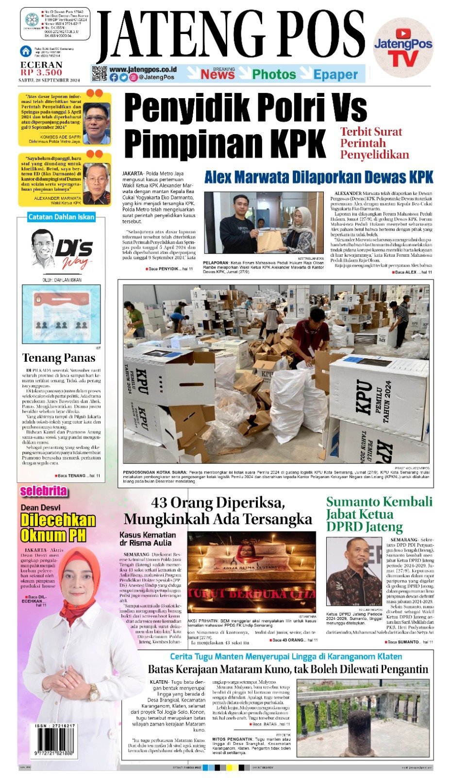 Epaper E-Paper Koran Jateng Pos, Sabtu 28 September 2024 Admin: Redaksi Sabtu, 28 September 2024 @06:19 TERKINI KoenoKoeni Hotel Semarang Topping-OffJumat, 30 Januari 2026 @22:46 Sambut Ramadan, Hotel Dafam Semarang Gelar Aksi Sosial ‘Preloved for Love’ Jumat, 30 Januari 2026 @22:44 Metro Park View Kota Lama Semarang Suguhkan “Treasure of Asian Taste”... Jumat, 30 Januari 2026 @22:43 OJK Perkuat Transparansi Pasar Modal, Respons Persyaratan MSCI Jumat, 30 Januari 2026 @22:40 Panduan Memilih Minyak Rem yang Tepat Jumat, 30 Januari 2026 @22:38 Rekomendasi... E-Paper Koran Jateng Pos, Jumat 31 Januari...Jumat, 31 Januari 2025 @07:41 E-Paper Koran Jateng Pos, 9 Juni 2023Jumat, 9 Juni 2023 @08:43 E-Paper Jateng Pos, 30 Januari 2022Minggu, 30 Januari 2022 @08:57 E-Paper Koran Jateng Pos, 08 Oktober 2021Jumat, 8 Oktober 2021 @07:38 E-Paper Koran Jateng Pos, Sabtu 04 Juni...Sabtu, 4 Juni 2022 @06:29 E-Paper Koran Jateng Pos, Jumat 09 Agustus...Jumat, 9 Agustus 2024 @09:00