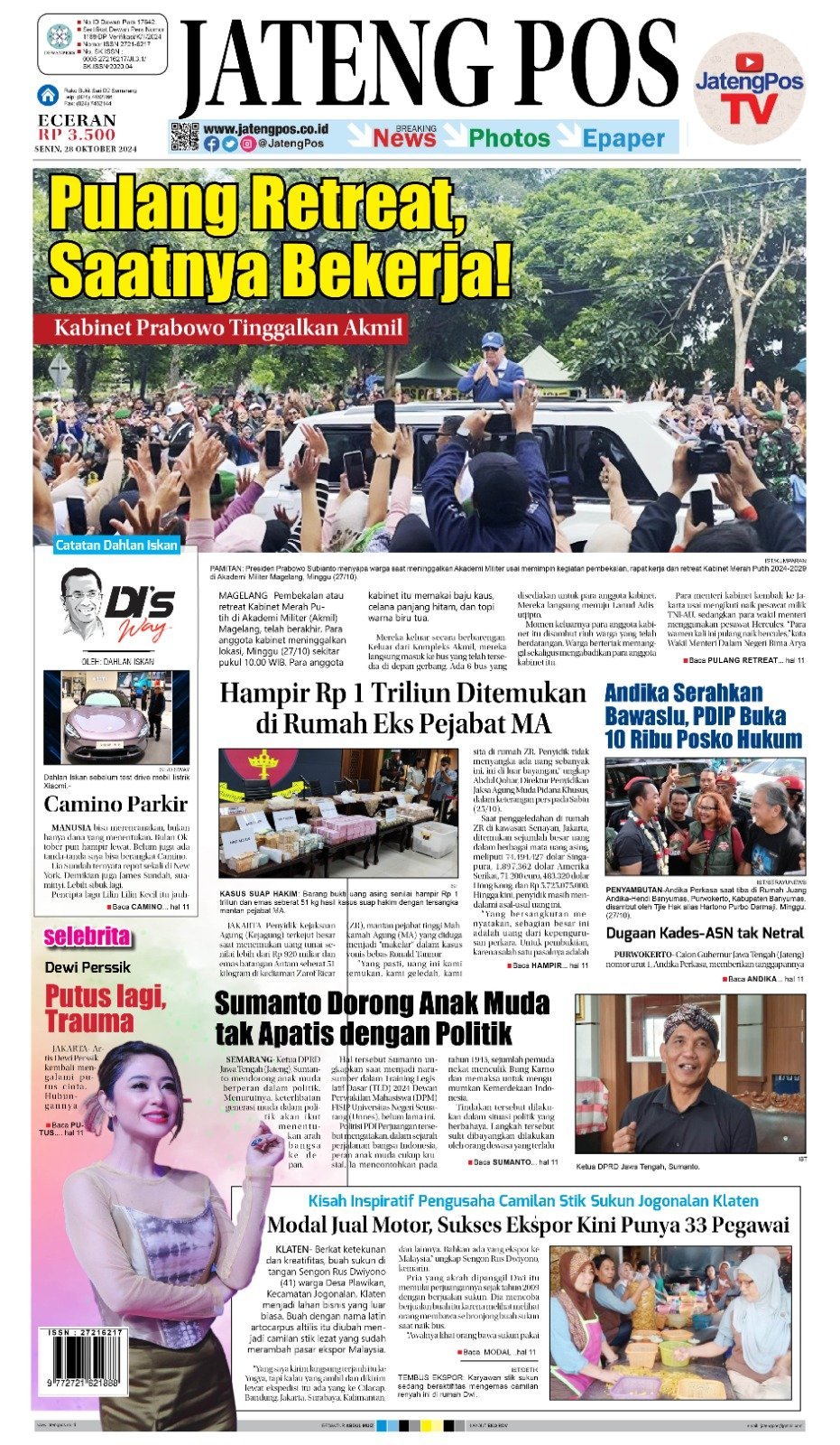 Epaper E-Paper Koran Jateng Pos, Senin 28 Oktober 2024 Admin: Redaksi Senin, 28 Oktober 2024 @07:07 TERKINI KoenoKoeni Hotel Semarang Topping-OffJumat, 30 Januari 2026 @22:46 Sambut Ramadan, Hotel Dafam Semarang Gelar Aksi Sosial ‘Preloved for Love’ Jumat, 30 Januari 2026 @22:44 Metro Park View Kota Lama Semarang Suguhkan “Treasure of Asian Taste”... Jumat, 30 Januari 2026 @22:43 OJK Perkuat Transparansi Pasar Modal, Respons Persyaratan MSCI Jumat, 30 Januari 2026 @22:40 Panduan Memilih Minyak Rem yang Tepat Jumat, 30 Januari 2026 @22:38 Rekomendasi... E-Paper Koran Jateng Pos, Jumat 19 Agustus...Jumat, 19 Agustus 2022 @10:50 E-Paper Koran Jateng Pos, Selasa 17 Oktober...Selasa, 17 Oktober 2023 @08:32 E-Paper Jateng Pos, 13 September 2021Senin, 13 September 2021 @06:17 E-Paper Koran Jateng Pos, Selasa 03 September...Selasa, 3 September 2024 @06:07 E-Paper Koran Jateng Pos, Rabu 7 Juni...Rabu, 7 Juni 2023 @07:58 E-Paper Koran Jateng Pos, Rabu 12 Juni...Rabu, 12 Juni 2024 @22:47