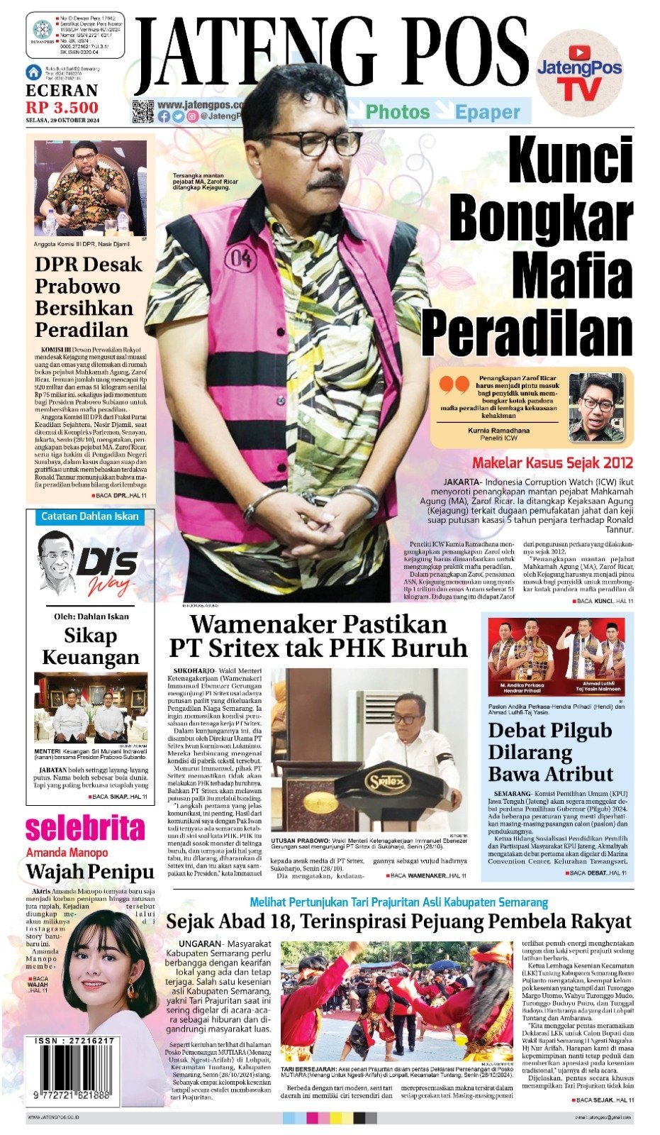 Epaper E-Paper Koran Jateng Pos, Selasa 29 Oktober 2024 Admin: Redaksi Selasa, 29 Oktober 2024 @06:16 TERKINI Sekda Berharap Pusat Perbanyak Event Nasional di JatengSabtu, 25 April 2026 @15:58 Progresif Dalam Penanganan Stunting, Ahmad Luthfi Raih National Governance Award 2026 Sabtu, 25 April 2026 @15:43 Sekda Jateng Bicara Manfaat Olahraga untuk Veteran : Kebersamaan, Kesehatan, dan... Sabtu, 25 April 2026 @13:29 Berkah Setia Farm Jadi Percontohan Lumbung Ternak Jateng Sabtu, 25 April 2026 @13:26 Bank Jateng Ukir Prestasi, Anna Kusumarita Raih The Most Outstanding Women... Sabtu, 25 April 2026 @11:16 Rekomendasi... E-Paper Koran Jateng Pos, Senin 14 Agustus...Senin, 14 Agustus 2023 @10:23 E-Paper Koran Jateng Pos, Selasa 21 Januari...Selasa, 21 Januari 2025 @06:54 E-Paper Koran Jateng Pos, Selasa , 18...Selasa, 18 Maret 2025 @06:11 E-Paper Koran Jateng Pos, Kamis 06 Maret...Kamis, 6 Maret 2025 @09:53 E-Papar Jateng Pos, 11 September 2021Sabtu, 11 September 2021 @05:07 E-Paper Koran Jateng Pos, 24 Januari 2022Senin, 24 Januari 2022 @08:39