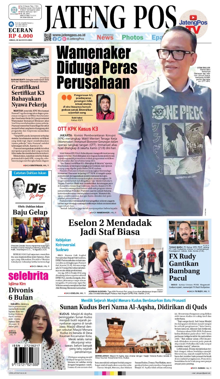 Epaper Headline Koran Jateng Pos, Jumat 22 Agustus 2025 Admin: yasin Jumat, 22 Agustus 2025 @05:01 TERKINI Ahmad Luthfi Pastikan Percepatan Penanganan Bencana di Purbalingga, Huntara dan Huntap Mulai DipersiapkanJumat, 30 Januari 2026 @20:19 Gubernur Ahmad Luthfi Kunjungi Pengungsi Bencana Purbalingga Jumat, 30 Januari 2026 @19:30 Nawal Yasin Luncurkan Rumah Bersama Ekspor Jateng Jumat, 30 Januari 2026 @19:28 Ketua Satgas MBG Kudus Ambil Sikap Tegas, Bellinda: Semua Dapur Harus... Jumat, 30 Januari 2026 @17:45 Lima Kadinas Hasil Selter Dilantik, BKPSDM Tunggu Surat Dirjen Dukcapil Jumat, 30 Januari 2026 @17:39 Rekomendasi... E-Paper Koran Jateng Pos, Jumat 31 Januari...Jumat, 31 Januari 2025 @07:41 E-Paper Koran Jateng Pos, 28 Januari 2022Jumat, 28 Januari 2022 @07:30 E-Paper Jateng Pos, Senin 14 September 2024Senin, 14 Oktober 2024 @05:21 E-Paper Koran Jateng Pos, 23 Desember 2021Kamis, 23 Desember 2021 @07:37 E-Paper Koran Jateng Pos, 24 Januari 2022Senin, 24 Januari 2022 @08:39 E-Paper Koran Jateng Pos, Kamis 23 Juni...Kamis, 23 Juni 2022 @06:33
