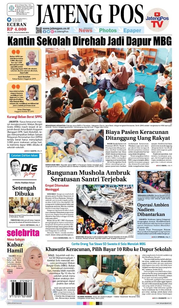 Epaper Headline Koran Jateng Pos, Selasa 30 September 2025 Admin: yasin Selasa, 30 September 2025 @06:47 TERKINI KoenoKoeni Hotel Semarang Topping-OffJumat, 30 Januari 2026 @22:46 Sambut Ramadan, Hotel Dafam Semarang Gelar Aksi Sosial ‘Preloved for Love’ Jumat, 30 Januari 2026 @22:44 Metro Park View Kota Lama Semarang Suguhkan “Treasure of Asian Taste”... Jumat, 30 Januari 2026 @22:43 OJK Perkuat Transparansi Pasar Modal, Respons Persyaratan MSCI Jumat, 30 Januari 2026 @22:40 Panduan Memilih Minyak Rem yang Tepat Jumat, 30 Januari 2026 @22:38 Rekomendasi... E-Paper Koran Jateng Pos, Jumat 19 Juli...Jumat, 19 Juli 2024 @07:42 E-Paper Koran Jateng Pos, 19 Desember 2021Minggu, 19 Desember 2021 @06:06 Headline Koran Jateng Pos, Sabtu 30 Agustus...Sabtu, 30 Agustus 2025 @10:16 E-Paper Koran Jateng Pos, Rabu 30 Oktober...Rabu, 30 Oktober 2024 @06:34 E-Paper Koran Jateng Pos, Senin 28 Oktober...Senin, 28 Oktober 2024 @07:07 E-Paper Koran Jateng Pos, 18 Januari 2022Selasa, 18 Januari 2022 @07:05