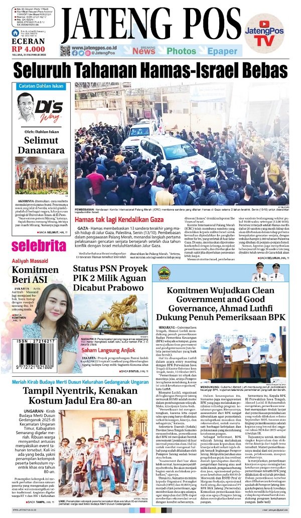 Epaper Headline Koran Jateng Pos, Selasa 14 Oktober 2025 Admin: yasin Senin, 13 Oktober 2025 @05:29 TERKINI Sekda Berharap Pusat Perbanyak Event Nasional di JatengSabtu, 25 April 2026 @15:58 Progresif Dalam Penanganan Stunting, Ahmad Luthfi Raih National Governance Award 2026 Sabtu, 25 April 2026 @15:43 Sekda Jateng Bicara Manfaat Olahraga untuk Veteran : Kebersamaan, Kesehatan, dan... Sabtu, 25 April 2026 @13:29 Berkah Setia Farm Jadi Percontohan Lumbung Ternak Jateng Sabtu, 25 April 2026 @13:26 Bank Jateng Ukir Prestasi, Anna Kusumarita Raih The Most Outstanding Women... Sabtu, 25 April 2026 @11:16 Rekomendasi... E-Paper Jateng Pos, 4 September 2021Jumat, 3 September 2021 @21:31 E-Paper Koran Jateng Pos, Selasa 23 Agustus...Selasa, 23 Agustus 2022 @08:47 E-Paper Koran Jateng Pos, Jumat 08 November...Jumat, 8 November 2024 @08:06 E-Paper Koran Jateng Pos, Rabu 14 Juni...Rabu, 14 Juni 2023 @06:38 E-Paper Koran Jateng Pos, 11 Desember 2021Sabtu, 11 Desember 2021 @06:52 E-Paper Koran Jateng Pos, 20 Januari 2022Kamis, 20 Januari 2022 @07:04
