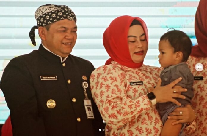 JATENGPOS.CO.ID, UNGARAN- Bupati Semarang H Ngesti Nugraha menyerahkan secara simbolis bantuan pencegahan stunting kepada 2 anak balita. Bantuan diserahkan dalam rangkaian acara temu kader PKK dan peringatan Hari ibu ke-97 di Pendapa Rumah Dinas Bupati Semarang di Ungaran, pekan kemarin. Turut mendampingi dalam kegiatan ini Ketua TP PKK Hj Peni Ngesti Nugraha.