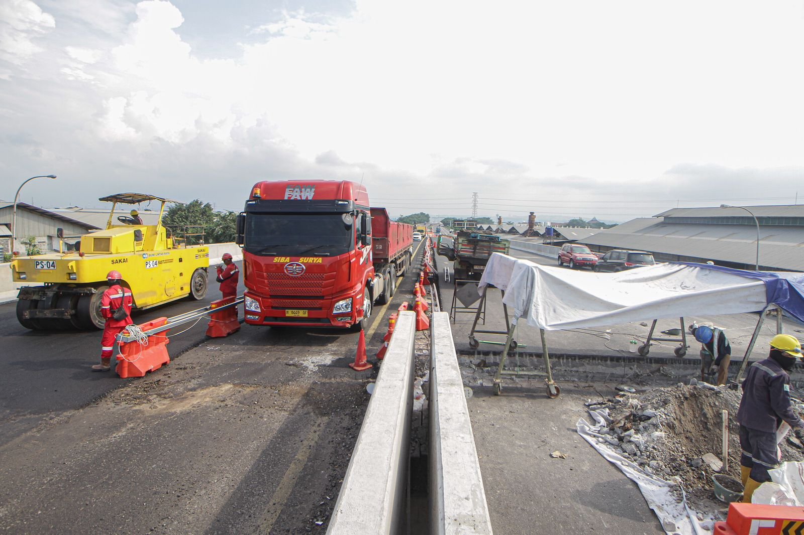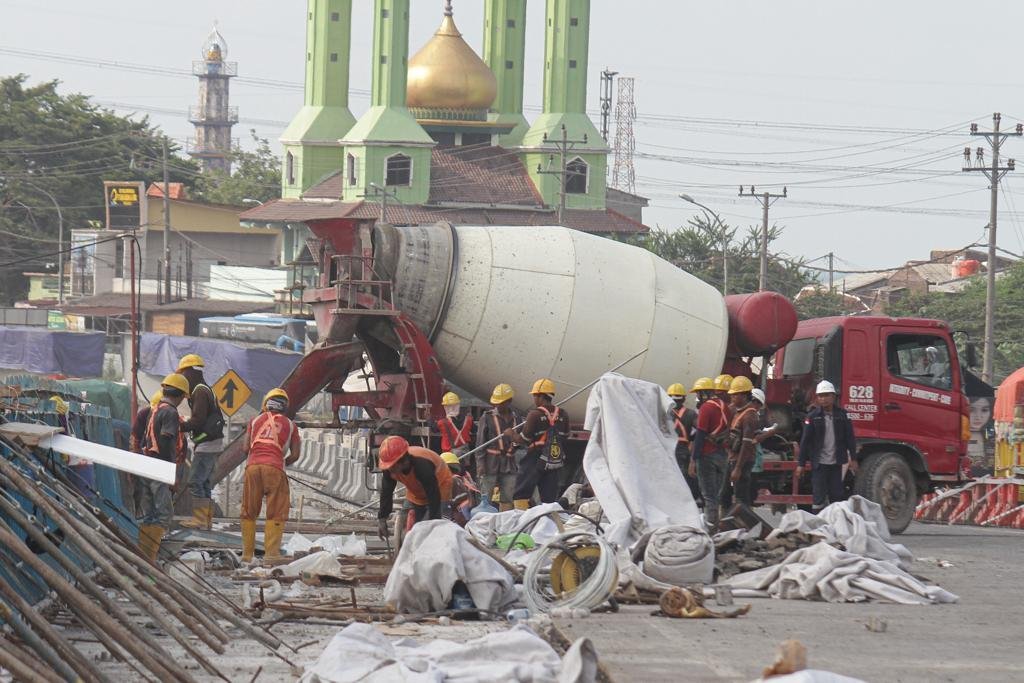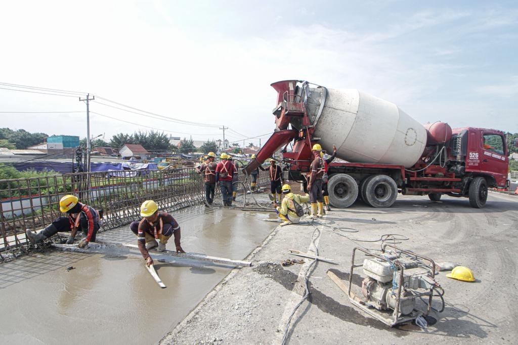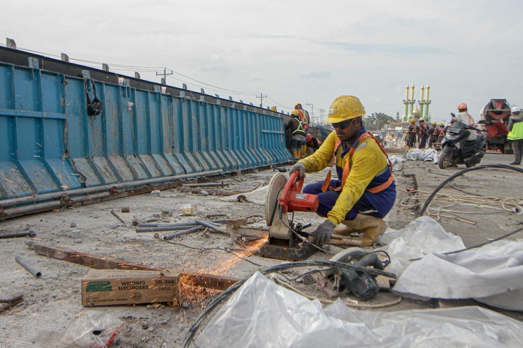 JATENGPOS.CO.ID, SEMARANG – Sejumlah Pekerja dikerahkan untuk mengebut perbaikan jalan dan jembatan Pantura Kaligawe Kota Semarang untuk menyambut arus mudik Lebaran 2024, senin (4/3). Perbaikan jalan dan jembatan ini masuk ke dalam Proyek Pembangunan Tol Semarang-Demak Seksi 1A yang dikerjakan oleh Perusahaan Hutama Karya bersama Beijing Urban Construction Grup. Meski saat ini progres pembangunan baru mencapai 21,569% namun ditargetkan pada H-10 Lebaran Idul Fitri sudah bisa difungsikan untuk arus mudik. (Foto: Prast.wd/Jateng Pos)