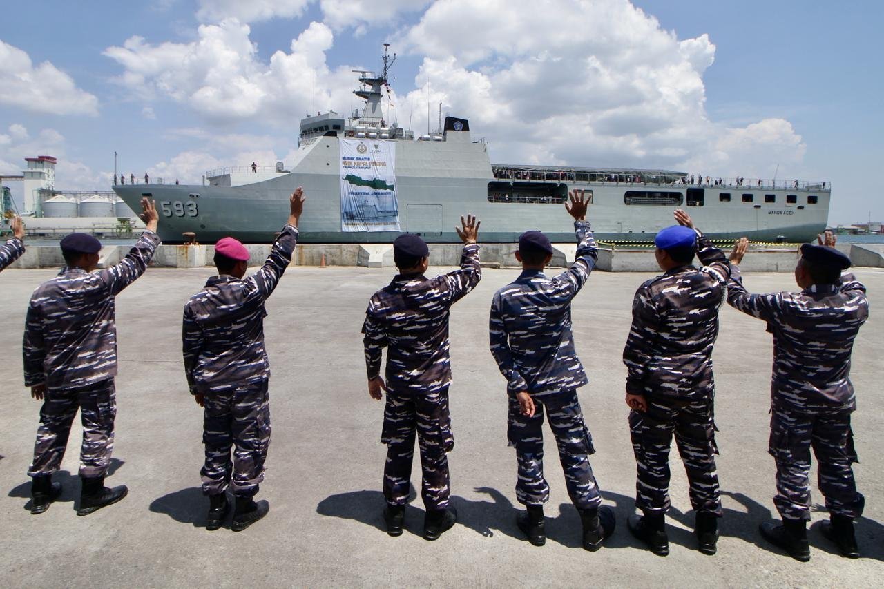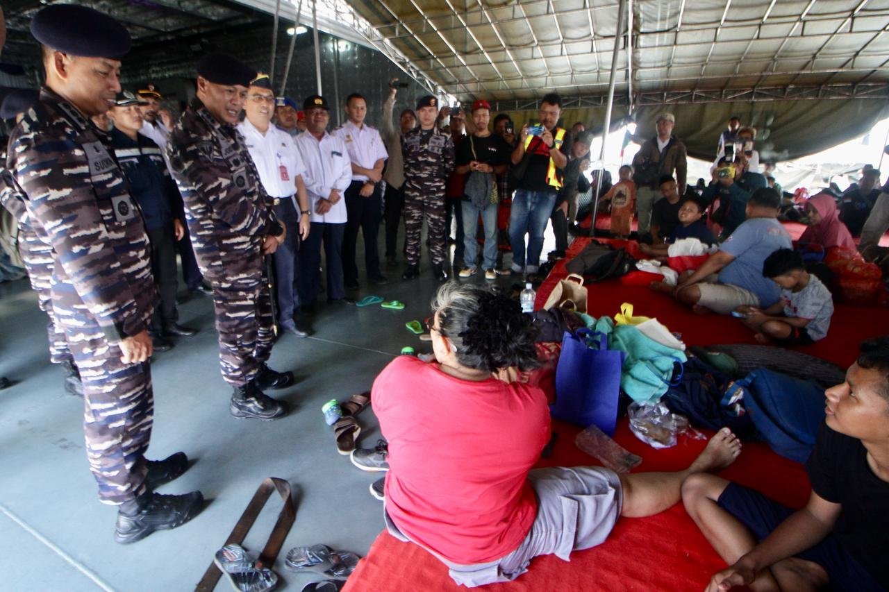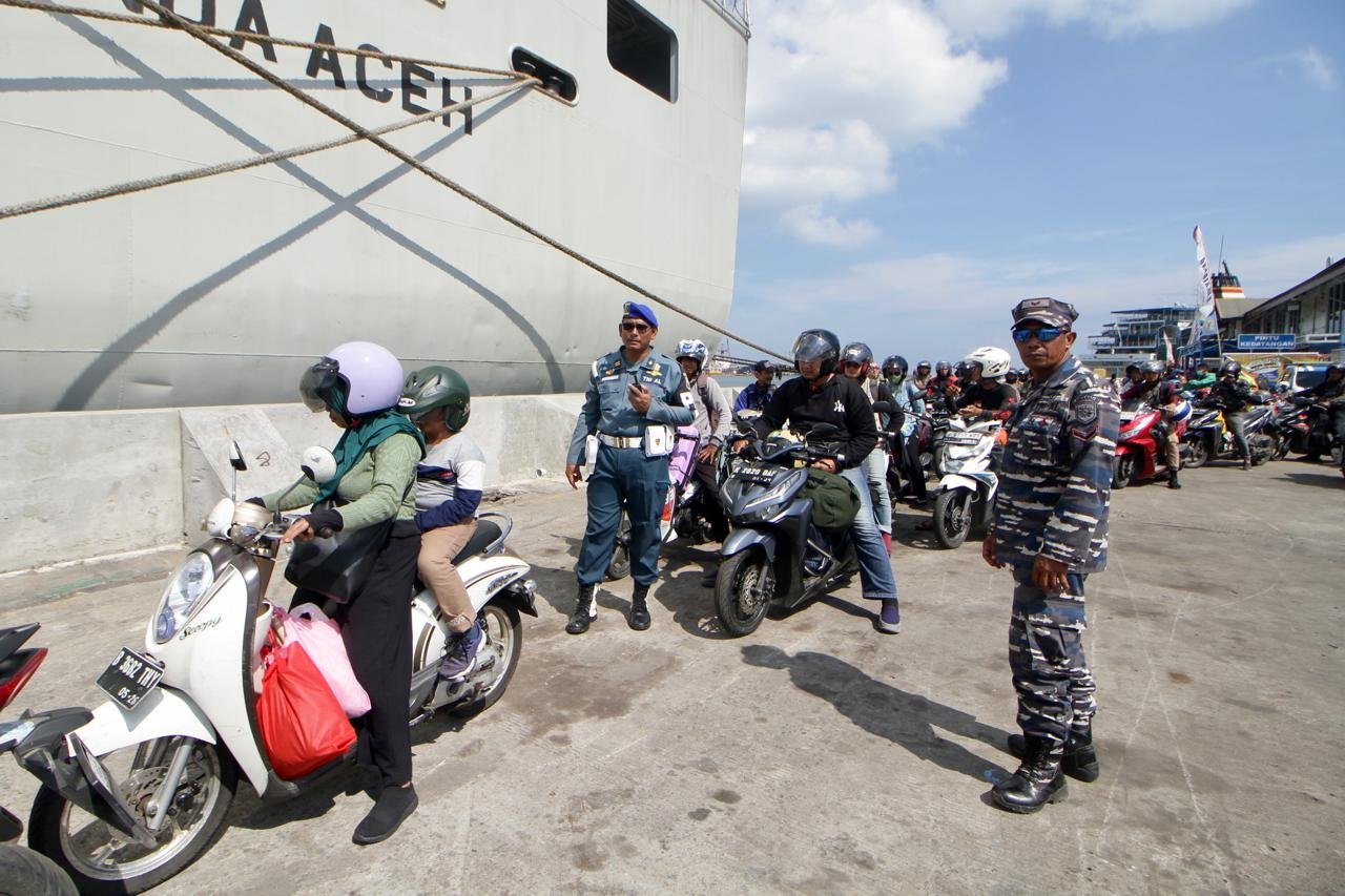 JATENGPOS.CO.ID, SEMARANG – Pemudik Balik memasuki Kapal KRI Banda Aceh-593 (KRI BAC-593) di Pelabuhan Tanjung Mas Semarang, Minggu (14/4/24). TNI Angkatan Laut menyediakan program mudik untuk arus balik gratis bagi masyarakat dengan menggunakan kapal perang yang berangkat dari Surabaya dan Semarang menuju Jakarta.
