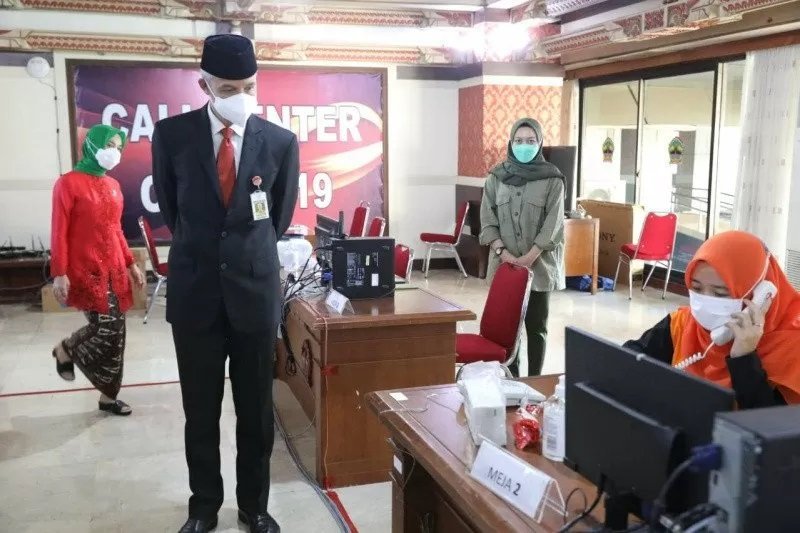 “Karena banyak sekali orang bertanya tentang berbagai persoalan ke saya. Ada yang tanya tempat tidur, ke mana vaksin, dan lainnya karena masyarakat antusias atau mungkin juga cemas, maka mereka semua tanya. Dari situasi itulah saya meminta harus ada call center yang back up,” kata Ganjar saat meninjau ruangan Call Center” COVID-19 di Semarang, Minggu.