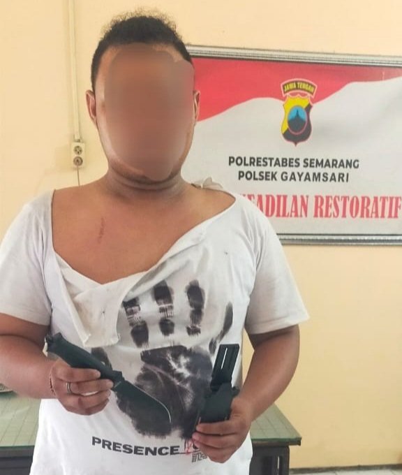 Polisi telah mengamankan pelaku dalam peristiwa tersebut. Terlapor diketahui berinisial RH (21), warga Bongsari, Semarang Barat. Dalam kejadian ini, polisi juga menyita barang bukti berupa sebilah pisau sangkur dengan panjang sekitar 20 cm.