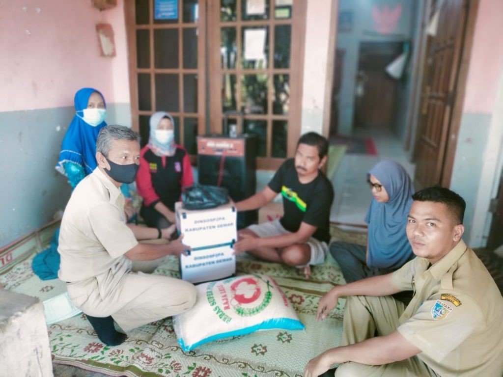 Keluarga korban mendapatkan bantuan dari DinsosP2PA Kabupaten Demak yang diberikan langsung oleh Sub Koordinator Perlindungan Sosial Korban Bencana pada Bidang Linjamsos Dinsos P2PA Kabupaten Demak Haryono berupa Sembako.