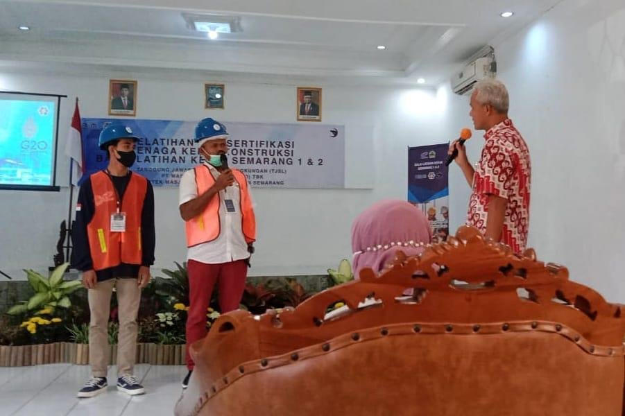 “Ini kolaborasi yang bagus antara CSR-nya PT Waskita dengan Pemprov Jateng dalam hal ini Dinas Tenaga Kerja. Mahasiswa terlibat, pekerja profesional terlibat,” kata Ganjar Pranowo saat memberikan motivasi dalam acara tersebut.