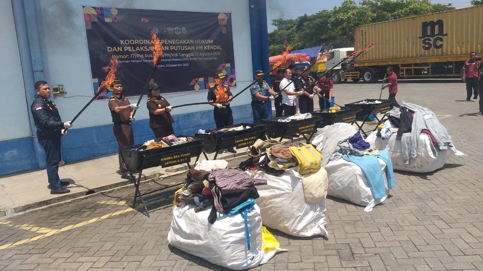 Dijelaskan, permusnahan pakaian bekas ini telah mendapatkan persetujuan berdasarkan Putusan Pengadilan Negeri Kendal nomor 77/Pid.Sus/2021/PN Kdi tanggal 23 Agustus 2021 yang putusannya untuk dimusnahkan.