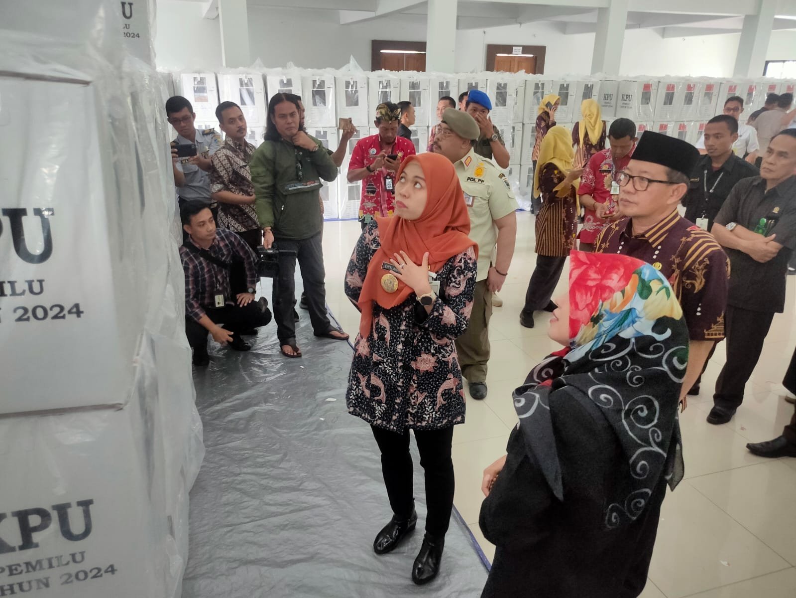 JATENGPOS.CO.ID, DEMAK – Bupati Demak Eisti’anah, di dampingi Wakil Bupati Ali Maksun, Sekretaris Daerah Akhmad Sugiharto, dan unsur Forkopimda Komandan Distrik Militer (Dandim) 0716/ Maryoto, Kepala Kejaksaan Negeri (Kajari) Andri Kurniawan, meninjau gudang logistik pemilu yang berlokasi di Gedung IPHI, Desa Jogoloyo, Kecamatan Wonosalam, kemarin.