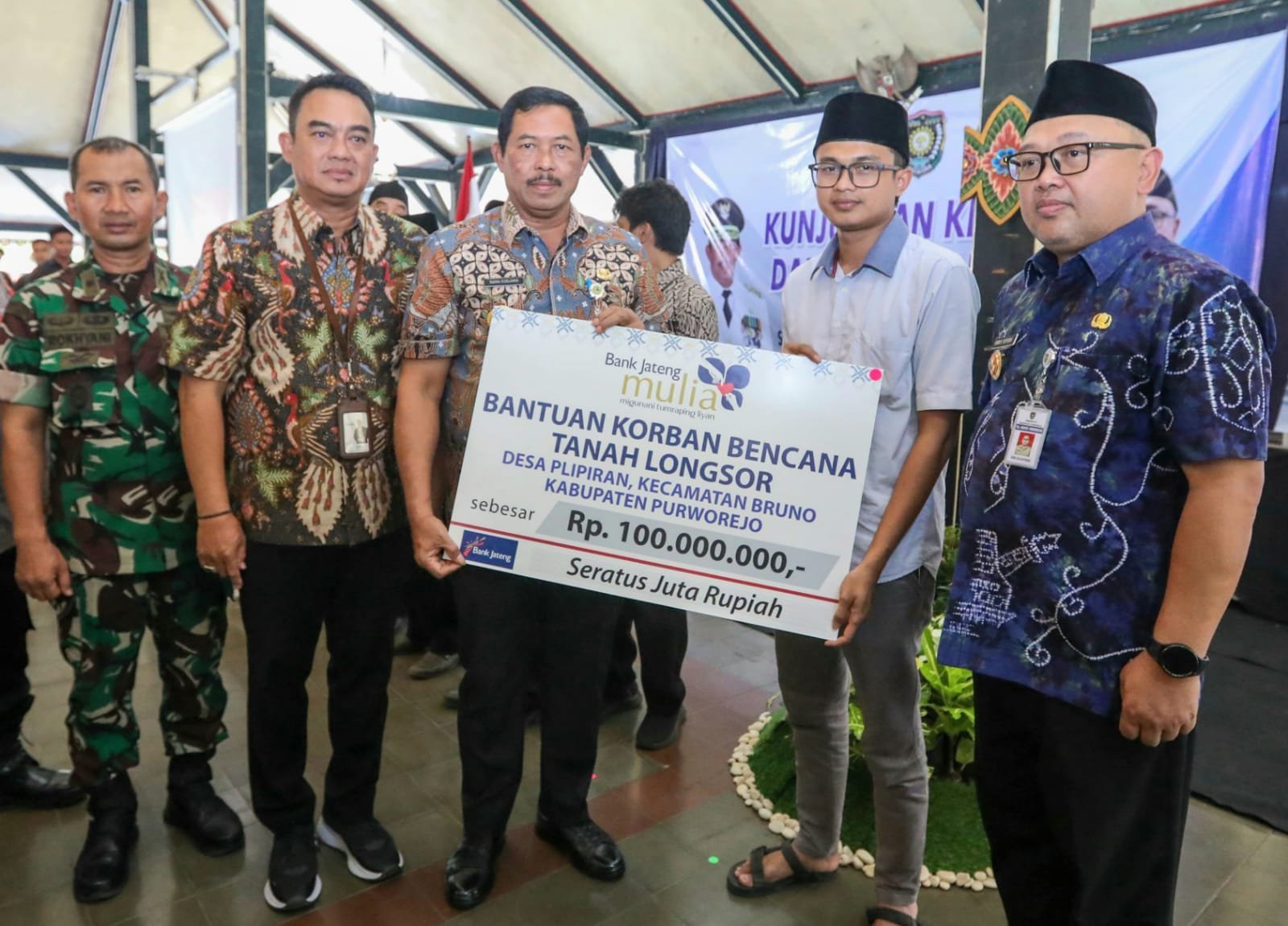 “Kami turut berduka cita terkait bencana tanah longsor yang terjadi di Desa Plipiran, Kecamatan Bruno yang menyebabkan empat orang meninggal. Ini merupakan keluarga Bapak Subur. Tadi bantuan dari Bank Jateng senilai Rp100 juta sudah diserahkan,” kata Nana Sudjana, di Kantor Gubernur Jateng, Jumat (22/11).