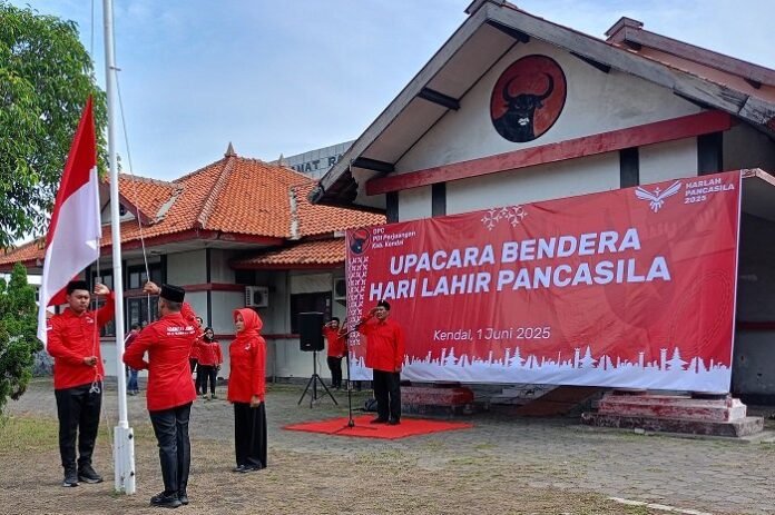 JATENGPOS.CO.ID,  KENDAL – Dewan Pimpinan Cabang Partai Demokrasi Indonesia Perjuangan (DPC PDIP) Kabupaten Kendal menggelar upacara bendera memperingati Hari Lahir Pancasila, Minggu (1/6).