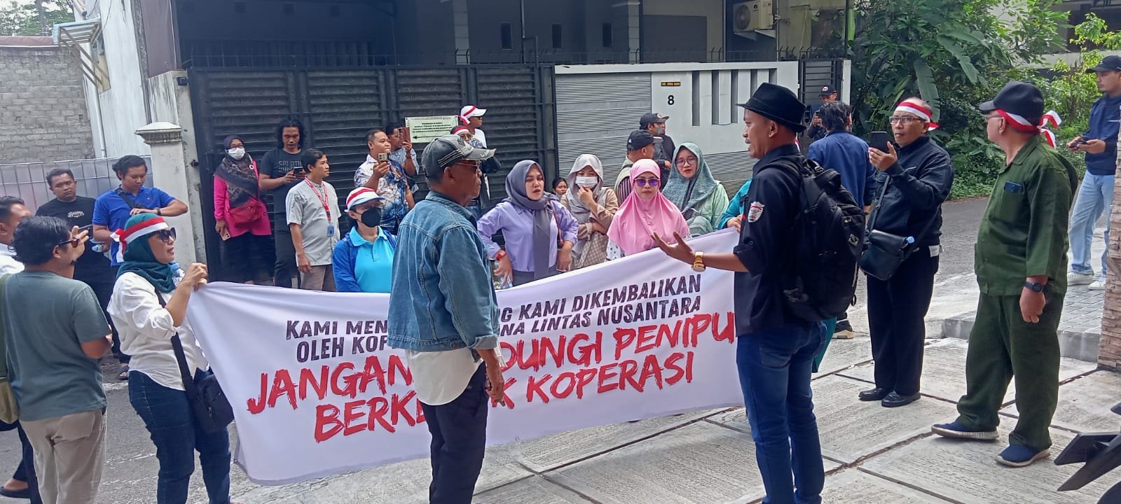 Dengan membawa berbagai poster dan spanduk tuntutan, massa yang merupakan korban, mendesak pihak pengelola Nicholas Nyoto Prasetyo untuk segera mengembalikan dana simpanan dan investasi mereka yang tak kunjung cair sejak berbulan-bulan lalu.