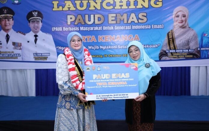 JATENGPOS. CO. ID, SEMARANG – Bunda Pendidikan Anak Usia Dini (PAUD) Provinsi Jawa Tengah (Jateng), Nawal Arafah Yasin (Ning Nawal) meluncurkan program PAUD Emas (PAUD Berbasis Masyarakat Untuk Generasi Emas). Program itu mendorong swadaya masyarakat untuk mewujudkan akses dan layanan pendidikan anak yang merata.