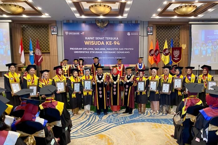 JATENGPOS.CO.ID SEMARANG – Universitas Stikubank (Unisbank) konsisten untuk menjadi Entrepreneurial University, pada acara Wisuda Ke-94 Program Diploma, Sarjana, Profesi dan Magister Universitas Stikubank (UNISBANK), sebanyak 12 wisudawan mendapatkan penghargaan Wiramuda.