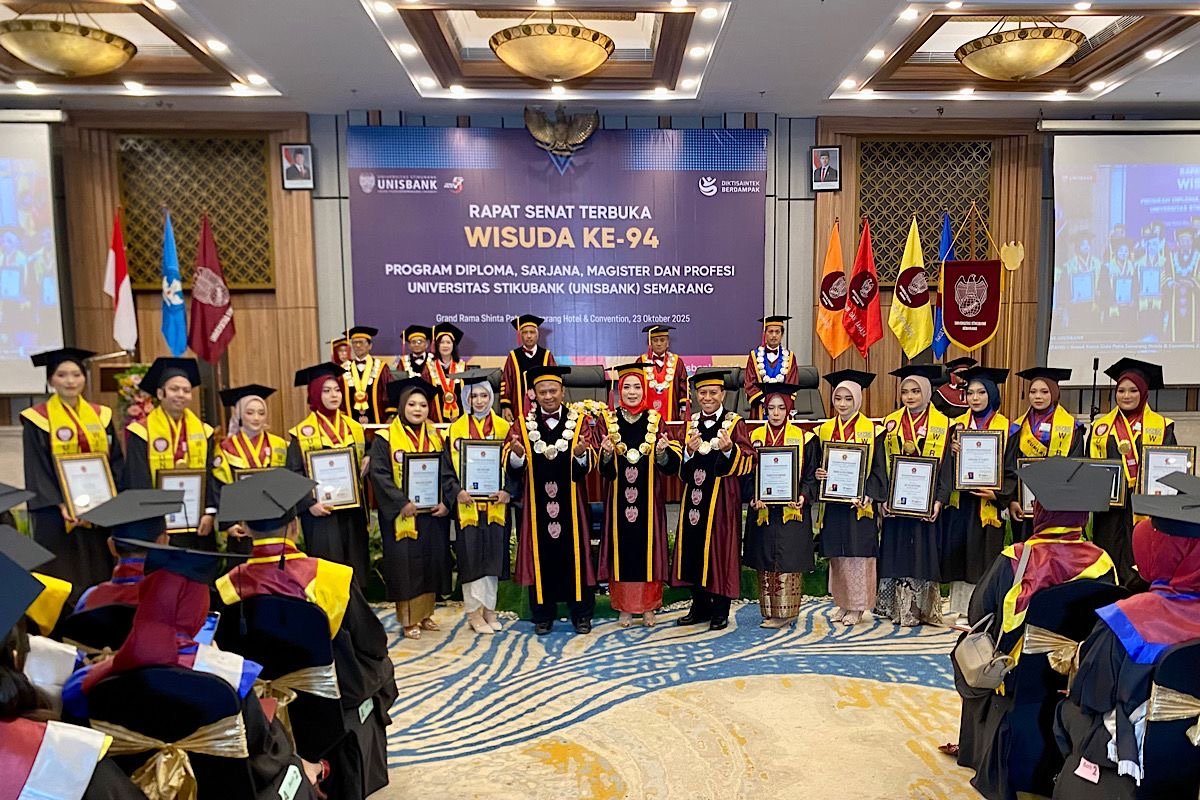 Sebanyak 423 wisudawan dilantik pada Rapat Senat Terbuka yang dipimpin oleh Rektor Unisbank, Dr. Elen Puspitasari, S.E., M.Si. pada hari Kamis (23/10/2025) di Patra Semarang Hotel & Convention.