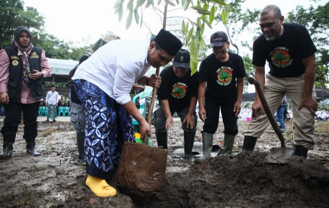 Penanaman bibit buah juga diikuti oleh Bupati dan Forkopimda Banjarnegara. Ratusan santri dari Pondok Pesantren Tanbihul Ghofilin Banjarnegara turut serta menyaksikan aksi penanaman tersebut.