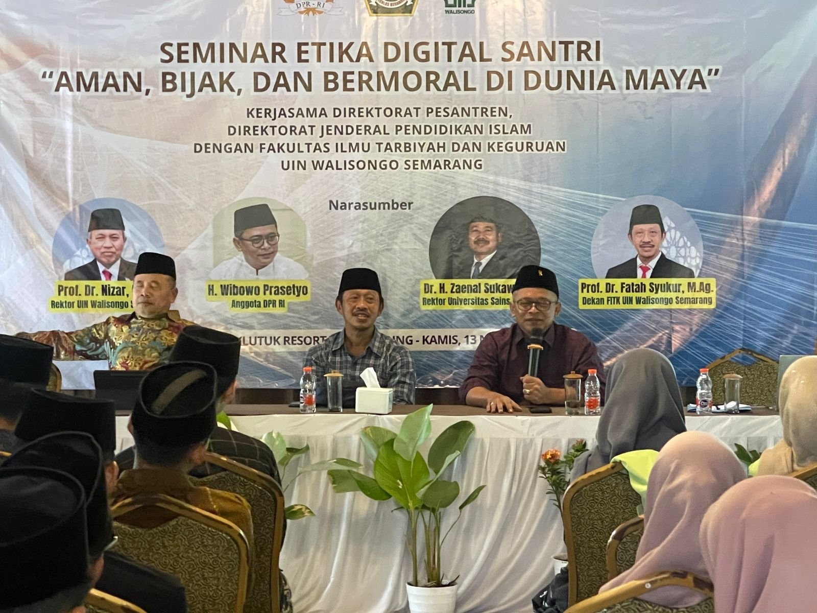 Acara menghadirkan Wibowo Prasetyo, Anggota DPR RI Fraksi PDI Perjuangan dari Dapil Jawa Tengah VI; Fatah Syukur, Dekan FITK UIN Walisongo; dan Zaenal Sukawi, Rektor Universitas Sains Al-Qur’an (UNSIQ) Wonosobo.
