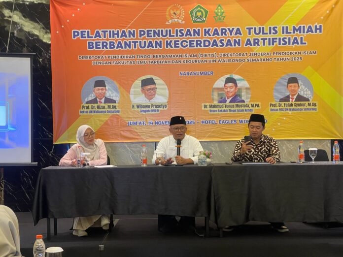 JATENGPOS.CO.ID, WONOSOBO – Tantangan integritas akademik di era kecerdasan artifisial (AI) menjadi sorotan utama dalam Pelatihan Penulisan Karya Ilmiah di Hotel Eagles Wonosobo, Jumat (14/11). Para peserta yang terdiri dari mahasiswa dan dosen diajak memahami bahwa teknologi hanyalah alat bantu, bukan pengganti proses berpikir ilmiah manusia.
