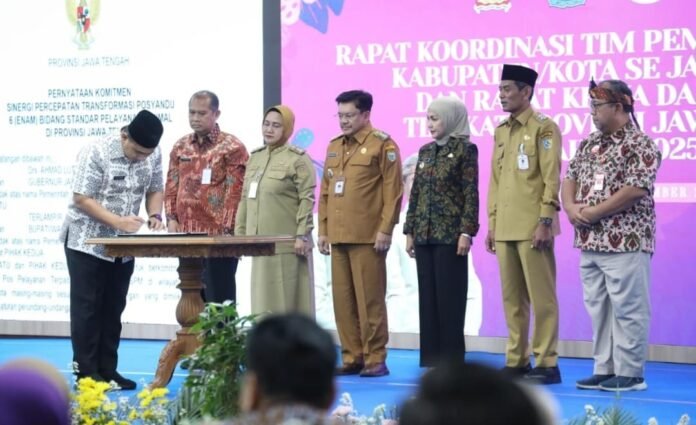 “Saya berharap kepala daerah kabupaten/kota peduli,” katanya dalam pembukaan Rapat Koordinasi Tim Pembina Posyandu Kabupaten/Kota se Jawa Tengah dan Rapat Kerja Daerah PKK tingkat Provinsi Jawa Tengah, dan Penandatanganan Komitmen Gubernur Bersama Bupati/Walikota se- Jateng, dalam Pelaksanaan Posyandu 6 SPM di Jateng, di Gedung Grdhika Bhakti Praja, Selasa, 18 November 2025.