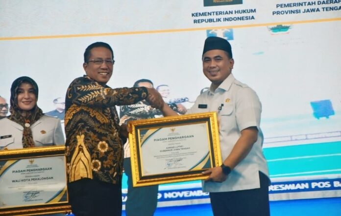 JATENGPOS.CO.ID, SEMARANG – Pemerintah Provinsi Jawa Tengah meraih Rekor Muri untuk Pembentukan Pos Bantuan Hukum Desa/Kelurahan Terbanyak di Satu Provinsi (8.563 Posbankum). Penghargaan diberikan kepada Wakil Gubernur Jawa Tengah Taj Yasin Maemoen, mewakili Gubernur Jawa Tengah Ahmad Luthfi, pada acara Peresmian Pos Bantuan Hukum Desa/Kelurahan dan Pembukaan Pelatihan Paralegal Provinsi Jawa Tengah, Rabu, 19 November 2025,di Gedung Ghradika Bakti Praja, Kota Semarang.