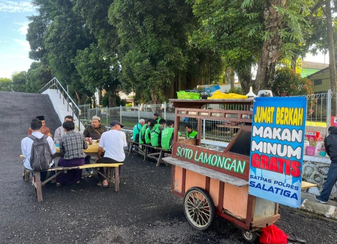 Kegiatan berbagi yang rutin digelar setiap hari Jumat pagi ini menyediakan makan dan minum gratis bagi masyarakat yang sedang mengurus layanan administrasi SIM di Satpas Salatiga, ojek online yang beroperasi Wilayah Kota Salatiga dan masyarakat umum lainnya.