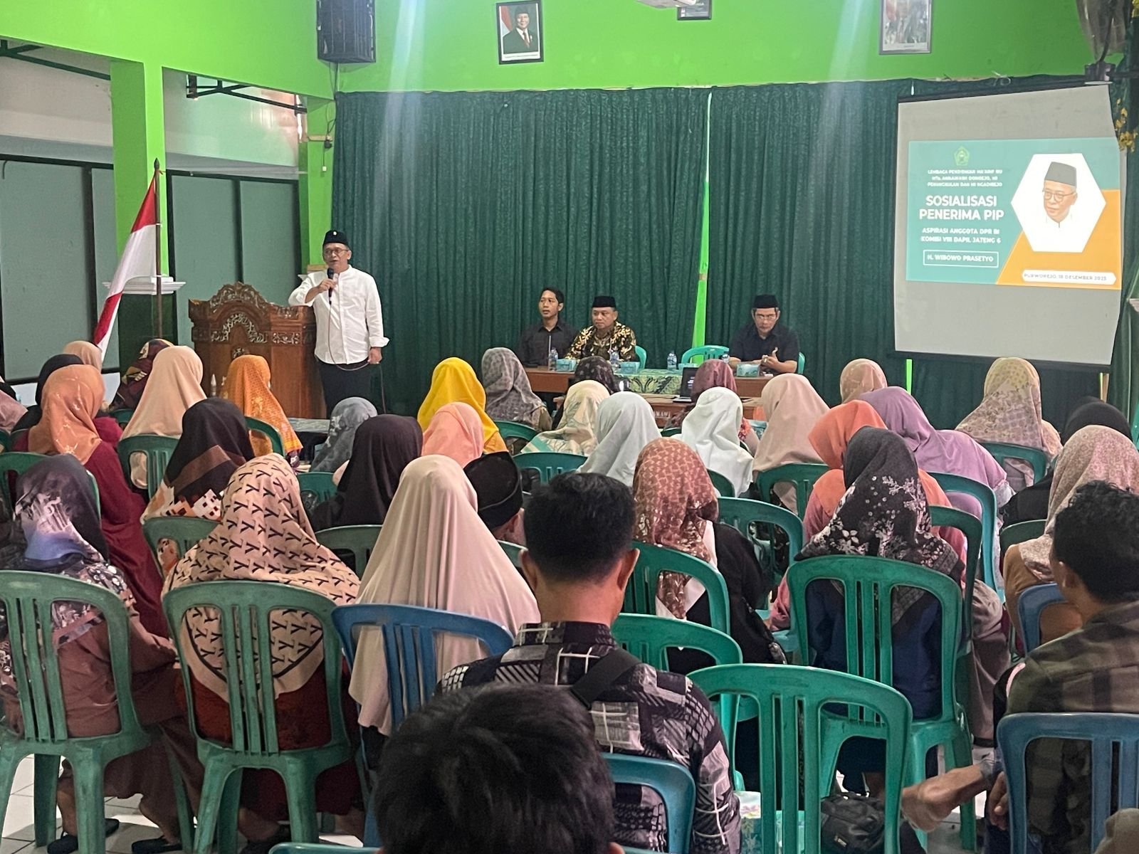 JATENGPOS.CO.ID, PURWOREJO – Anggota DPR RI, Wibowo Prasetyo, melaksanakan kegiatan Sosialisasi Penerima Program Indonesia Pintar (PIP) sekaligus Serap Aspirasi Masyarakat dalam rangka masa reses DPR RI. Kegiatan ini dilaksanakan di Gedung PC NU Purworejo, Senin (15/12), dan diikuti oleh penerima bantuan PIP dari Madrasah di Kecamatan Kaligesing dan Gebang.